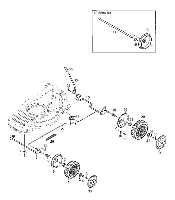 Hier finden Sie alle Ersatzteile von Mountfield Benzinrasenmäher ab 2003 M4 SPE TRI-CUT (Geräte Nr.: 12-5698-80) aus der Zeichnung Radaufhängung (Plastik-Räder):