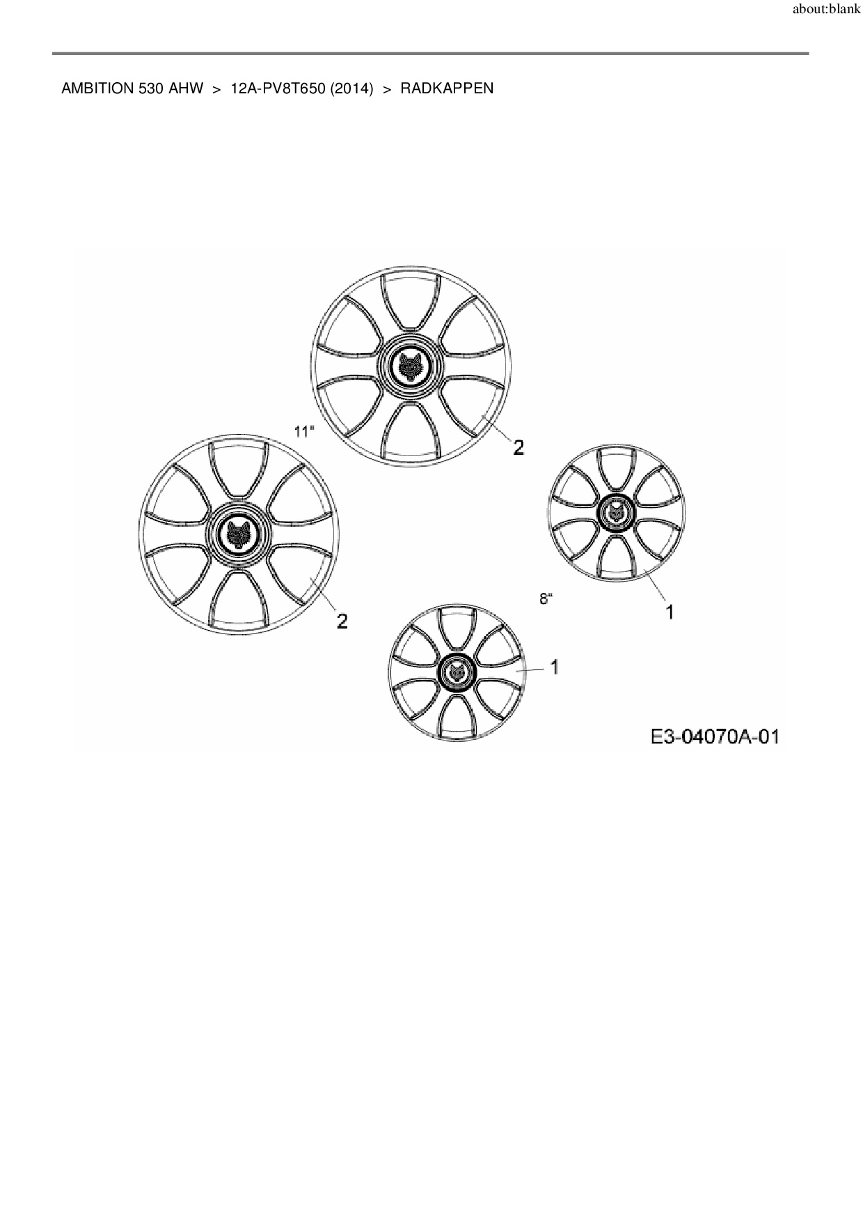 Ersatzteile für Motormäher mit Antrieb Wolf-Garten Ambition 530 AHW aus der Zeichnung Radkappen: