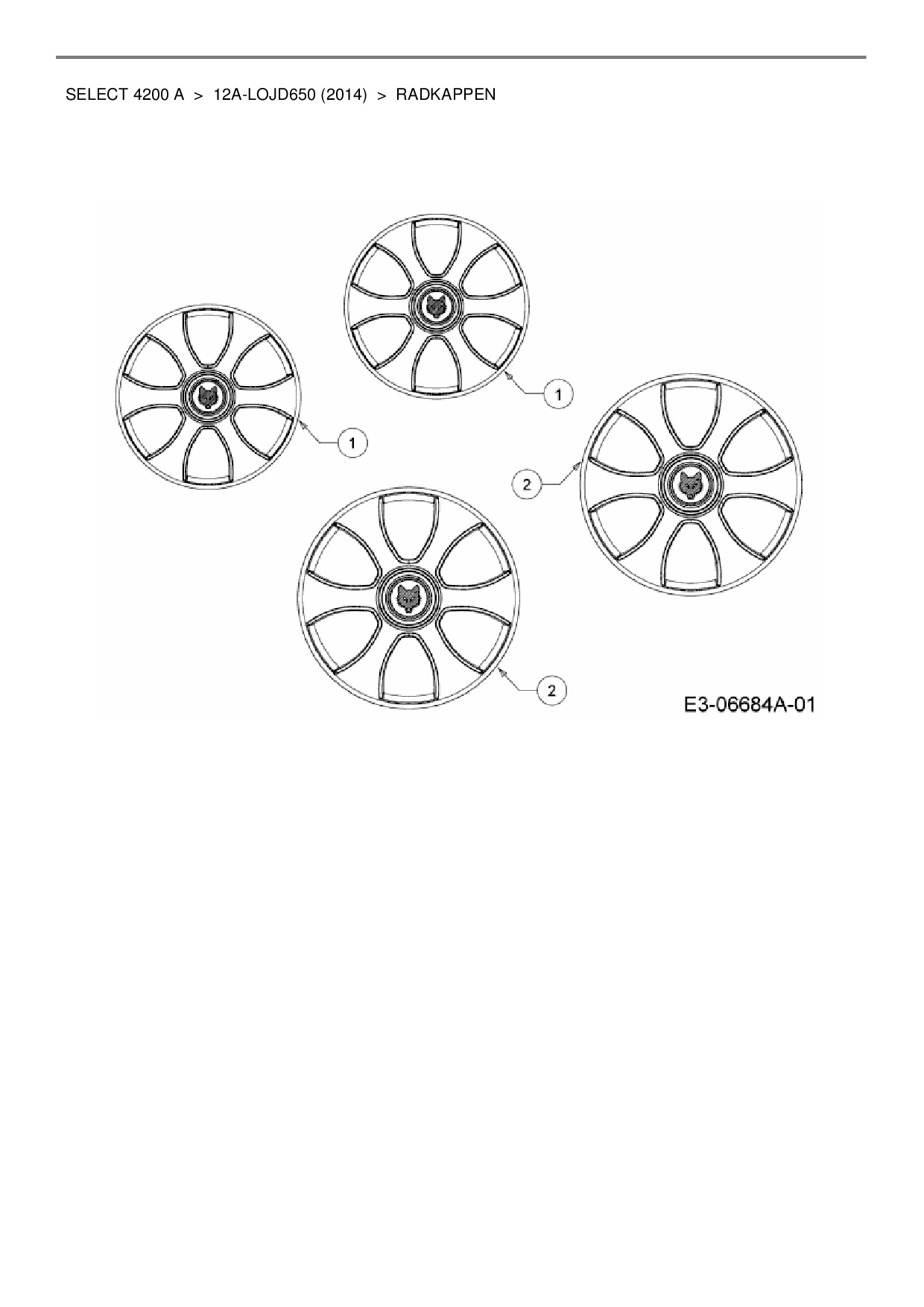 Ersatzteile für Motormäher mit Antrieb Wolf-Garten Select 4200 A aus der Zeichnung Radkappen: