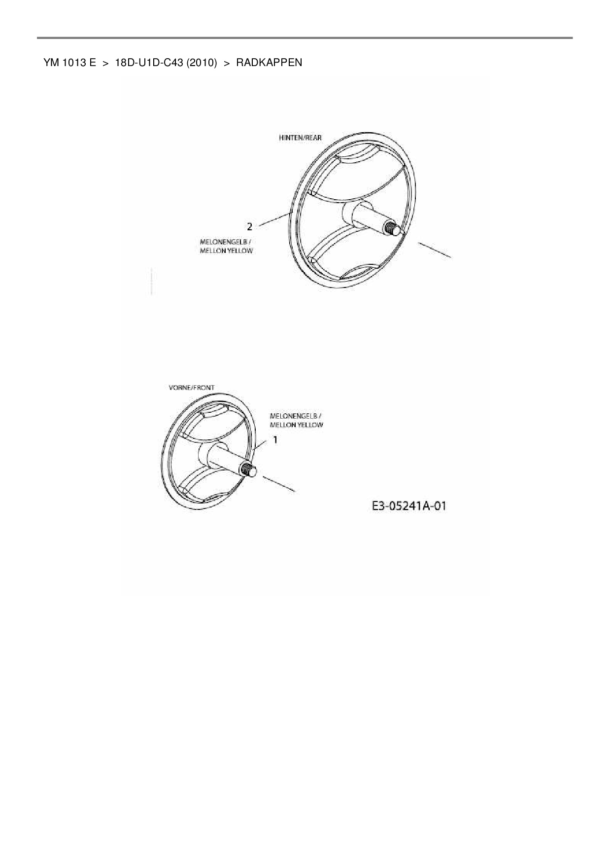 Ersatzteile für Elektromäher Yard-Man YM 1013 E aus der Zeichnung Radkappen: