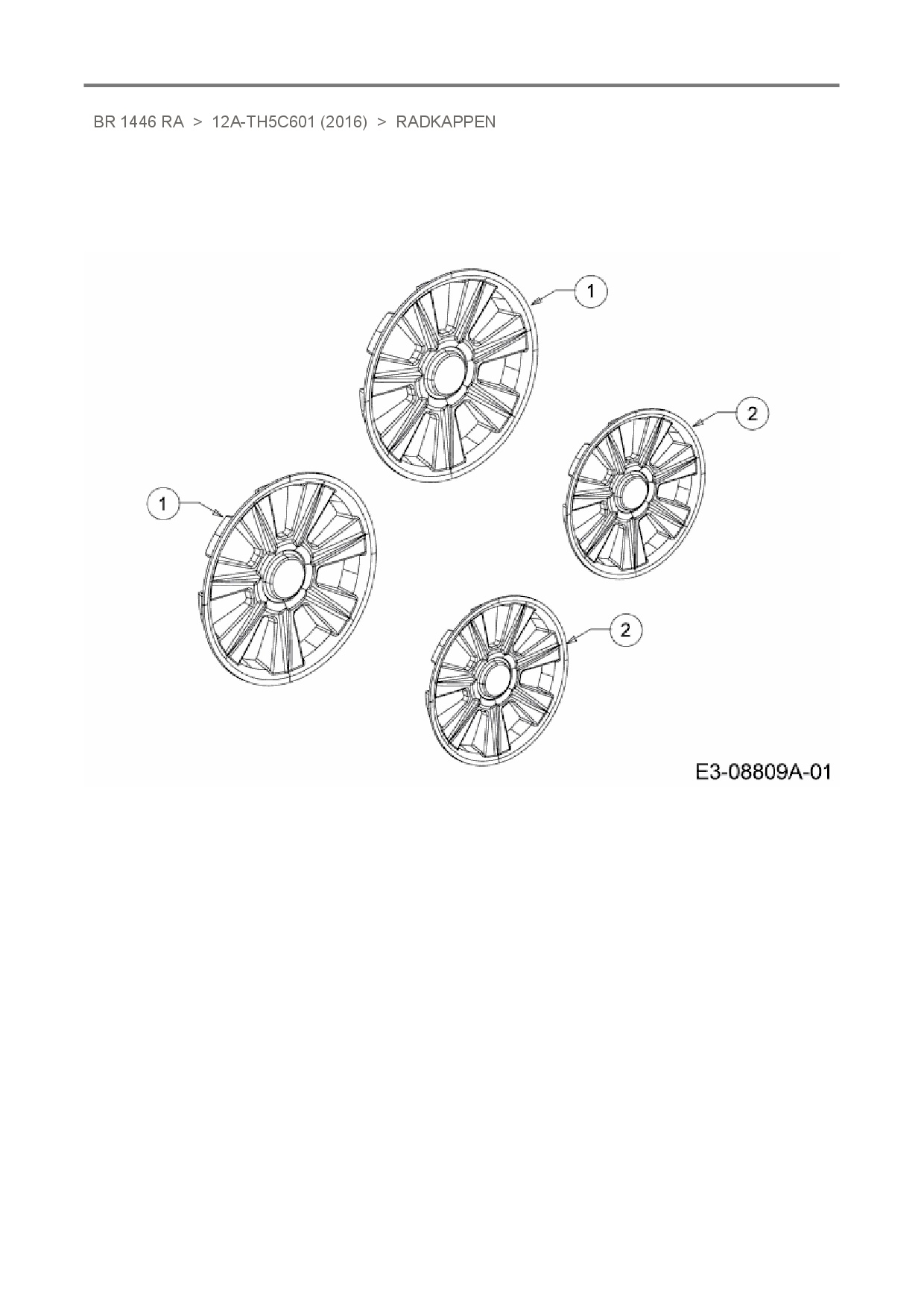 Ersatzteile für Motormäher mit Antrieb Wingart BR 1446 RA aus der Zeichnung Radkappen: