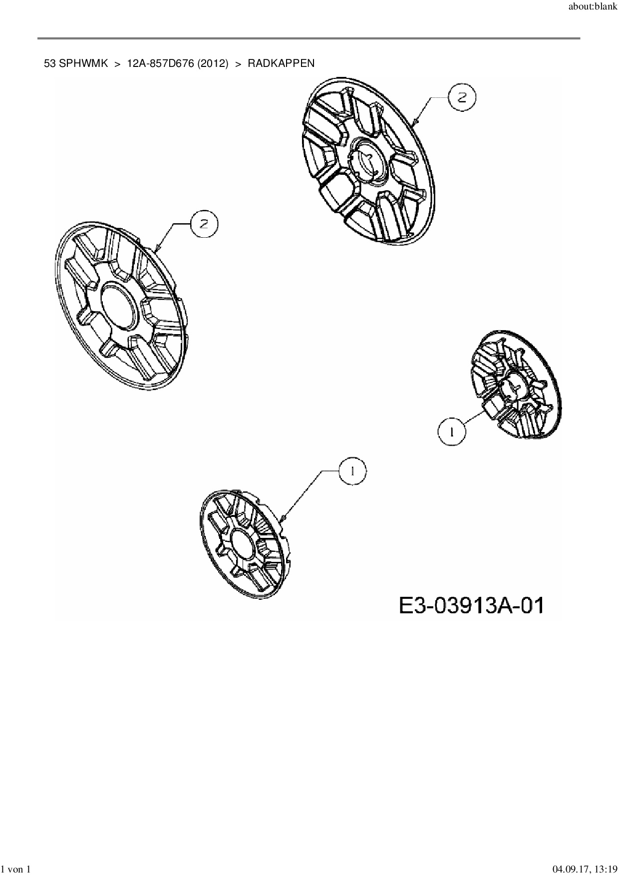 Ersatzteile für Motormäher mit Antrieb MTD 53 SPHWMK aus der Zeichnung Radkappen: