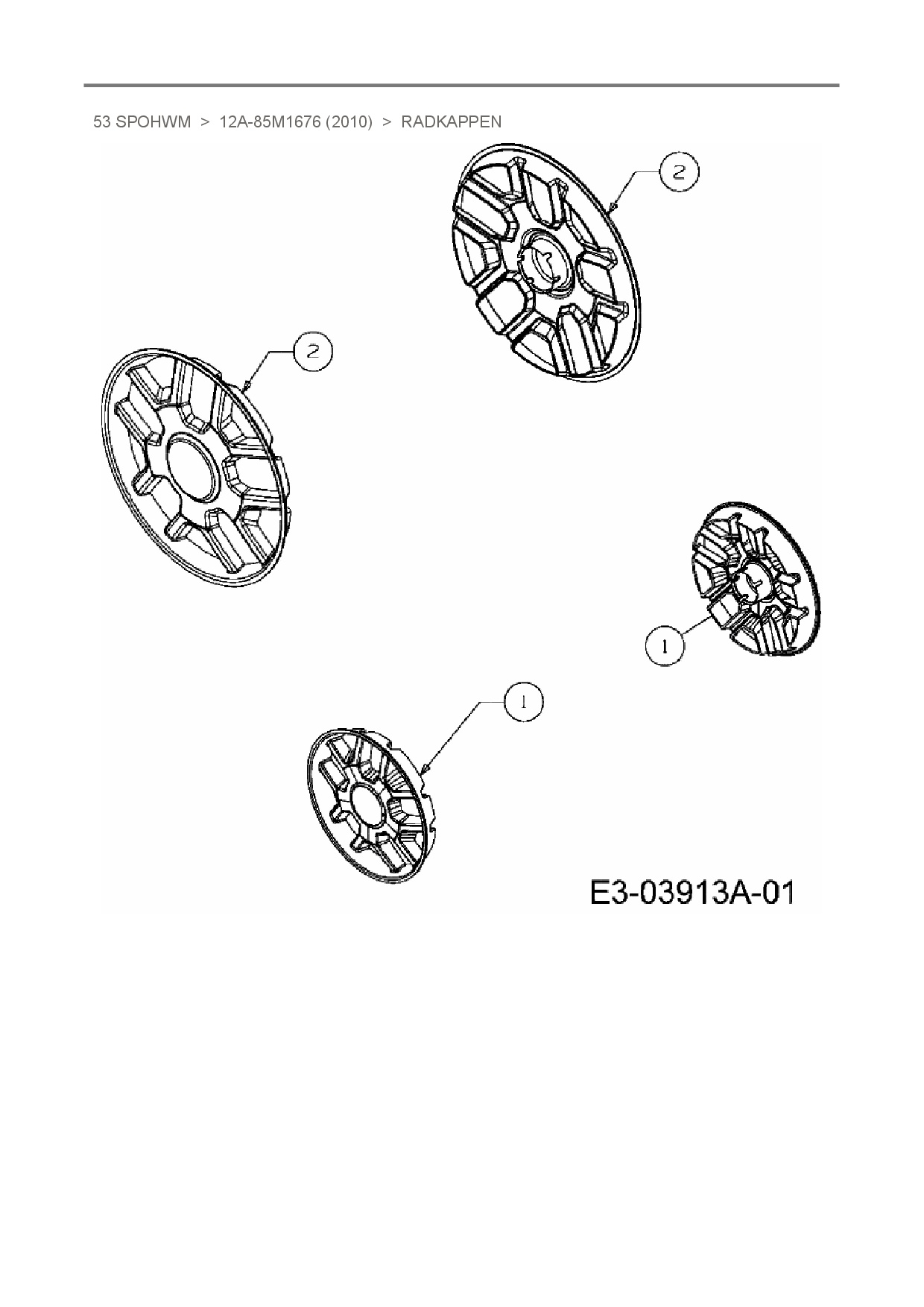 Ersatzteile für Motormäher mit Antrieb MTD 53 SPOHWM aus der Zeichnung Radkappen: