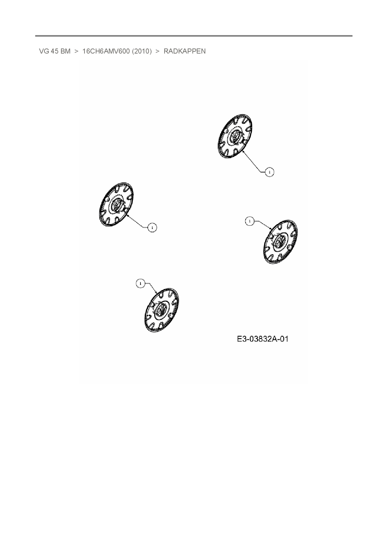 Ersatzteile für Motorvertikutierer MTD VG 45 BM aus der Zeichnung Radkappen: