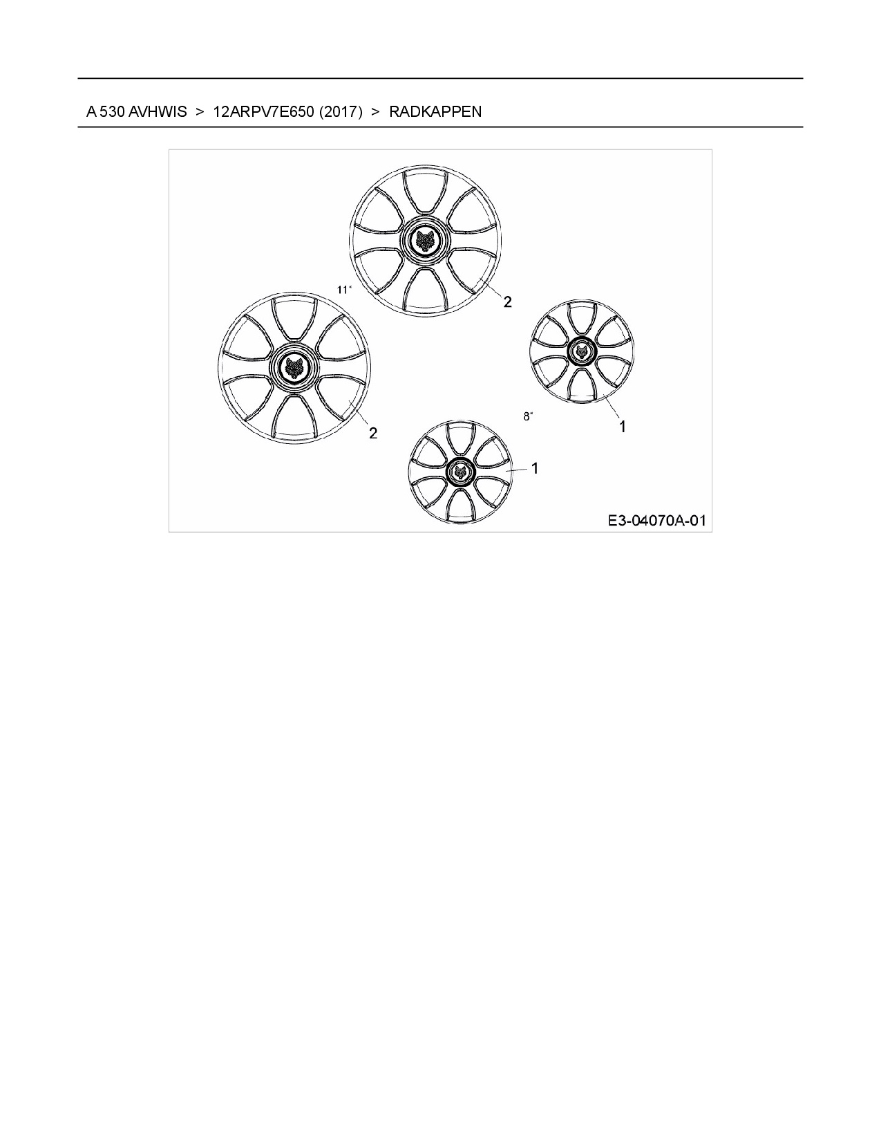 Ersatzteile für Motormäher mit Antrieb Wolf-Garten A 530 AVHWIS aus der Zeichnung Radkappen:
