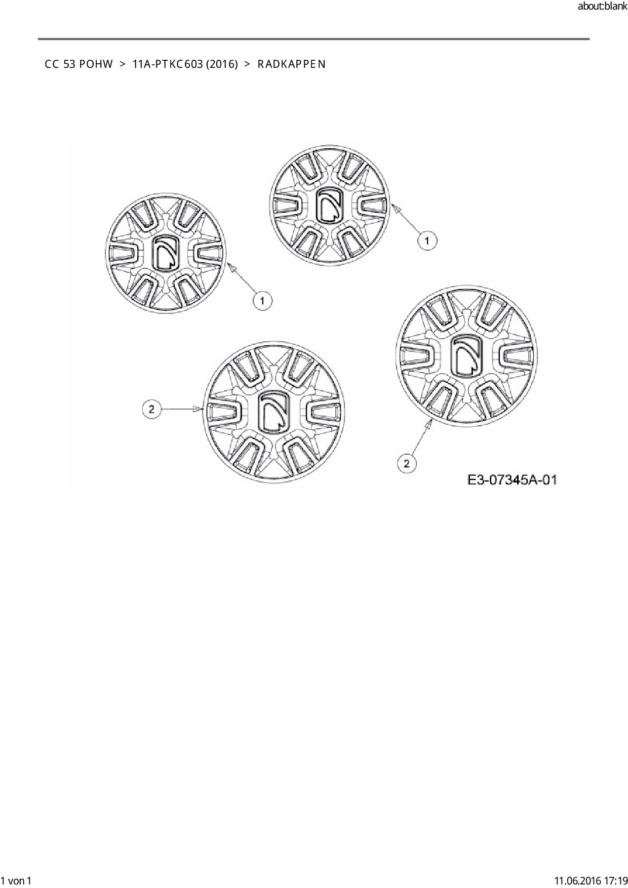 Ersatzteile für Motormäher Cub Cadet CC 53 POHW aus der Zeichnung Radkappen: