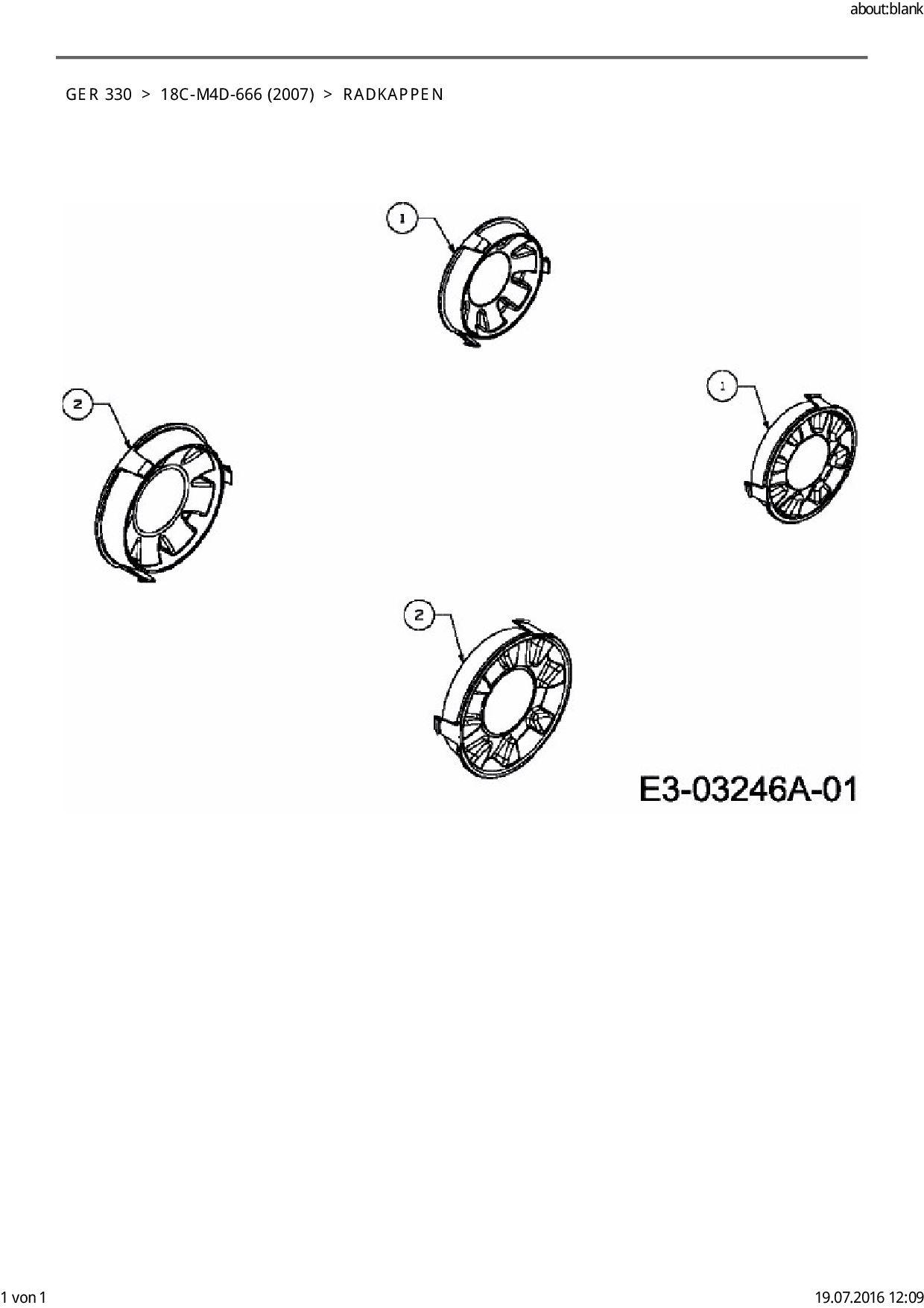 Ersatzteile für Elektromäher Garda GER 330 aus der Zeichnung Radkappen:
