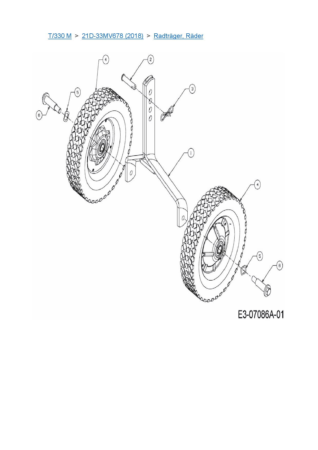 Ersatzteile für Motorhacke MTD T/330 M aus der Zeichnung Radträger, Räder: