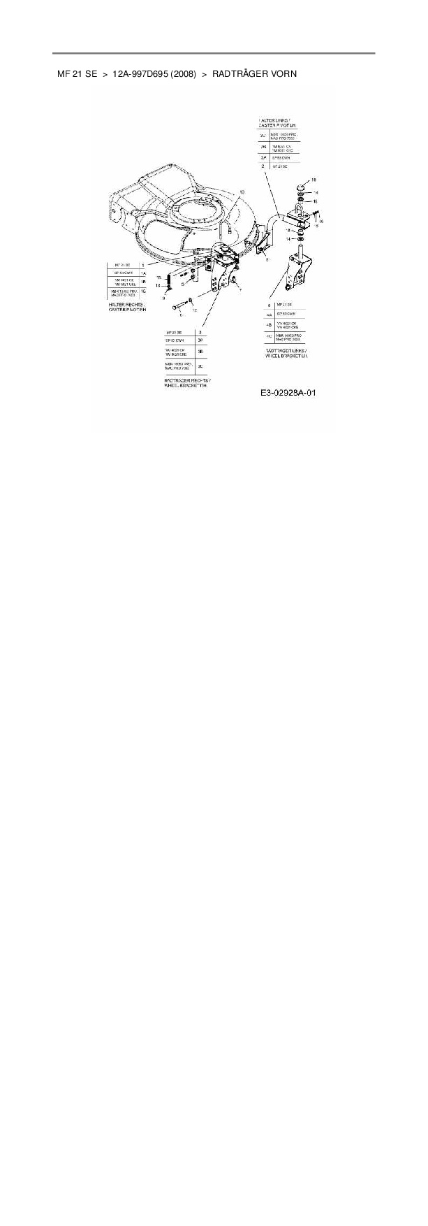Ersatzteile für Motormäher mit Antrieb Massey Ferguson MF 21 SE aus der Zeichnung Radträger vorn: