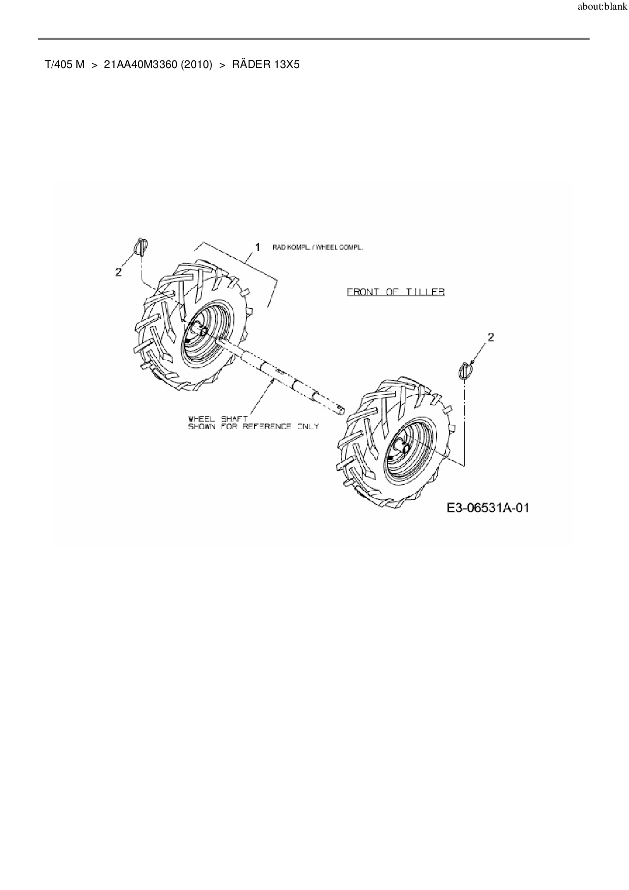 Ersatzteile für Motorhacke MTD T/405 M aus der Zeichnung Räder 13x5: