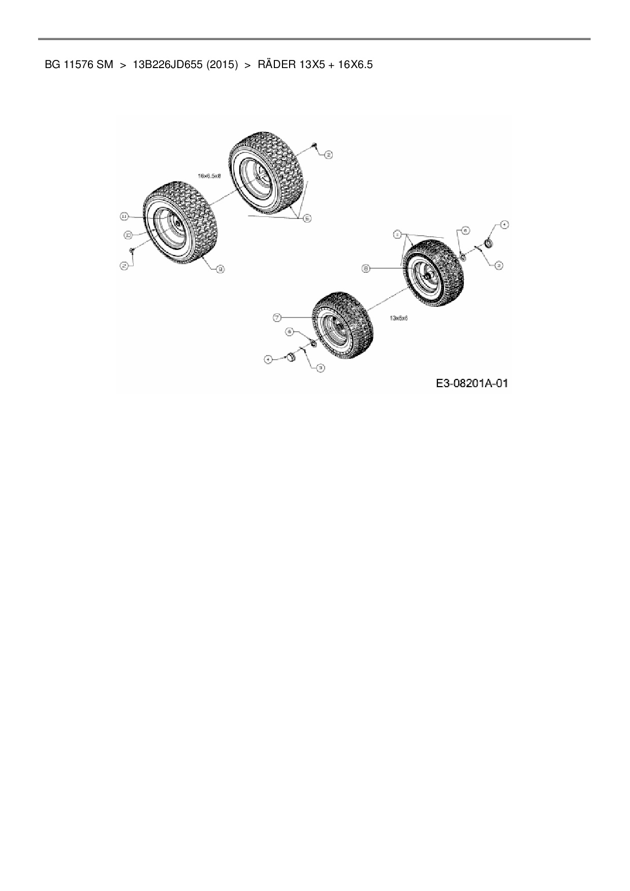 Ersatzteile für Rasentraktor Bestgreen BG 11576 SM aus der Zeichnung Räder 13x5 / 16x6.5: