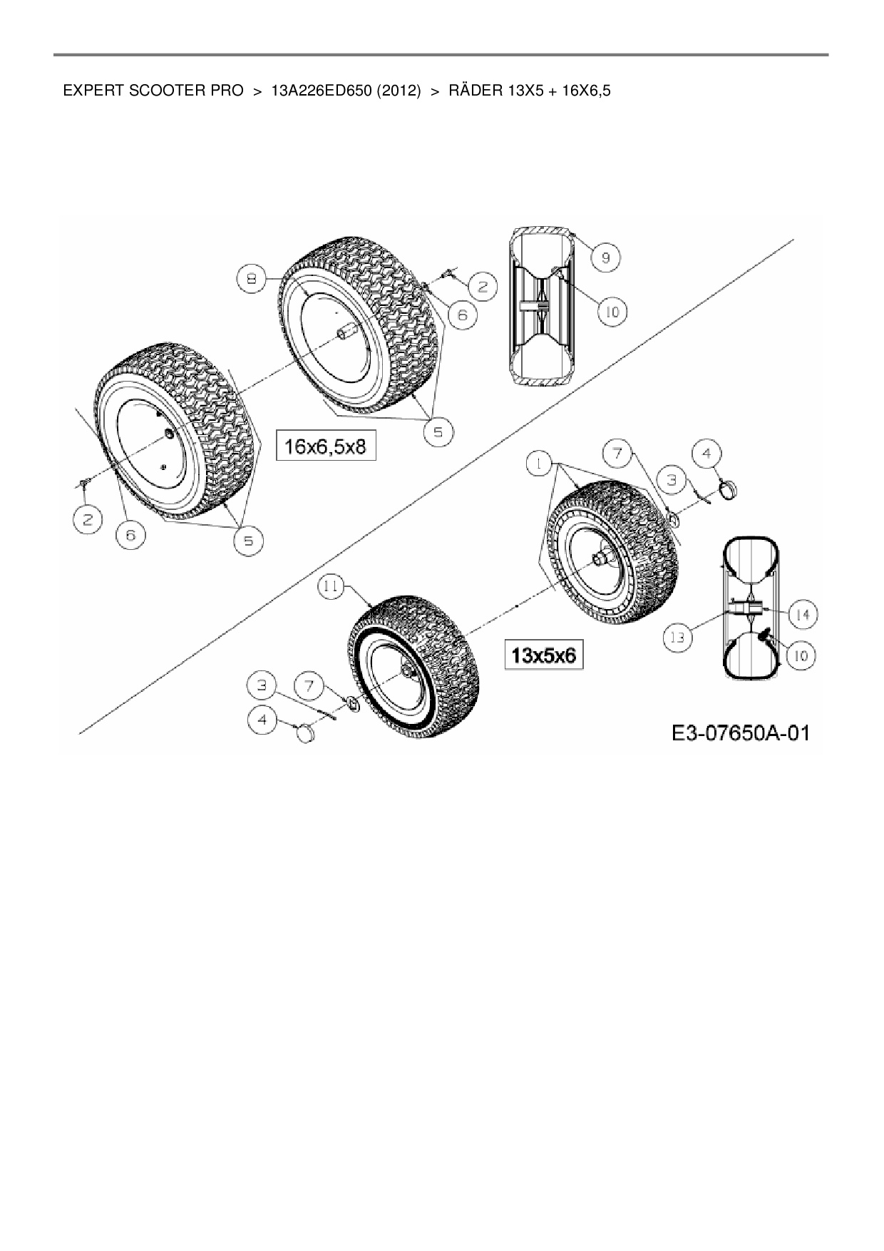 Ersatzteile für Rasentraktor Wolf-Garten Expert Expert Scooter Pro aus der Zeichnung Räder 13x5 + 16x6,5: