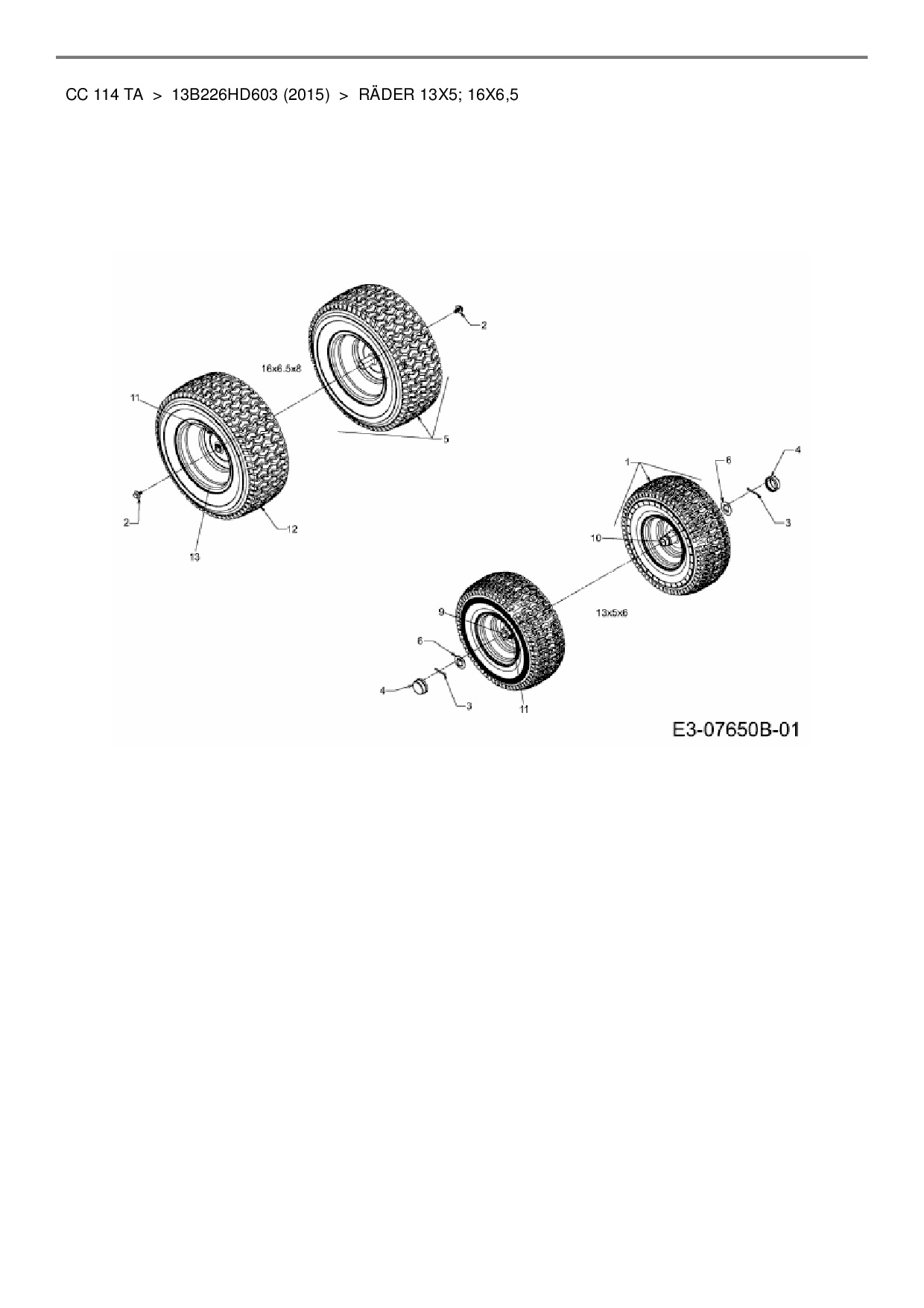 Ersatzteile für Rasentraktor Cub Cadet CC 114 TA aus der Zeichnung Räder 13x5; 16x6,5: