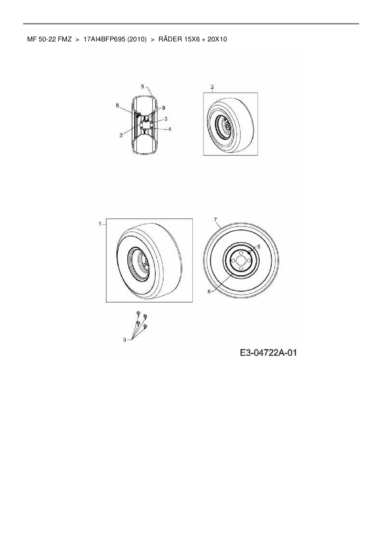 Ersatzteile für Zero Turn Massey Ferguson MF 50-22 FMZ aus der Zeichnung Räder 15x6 + 20x10: