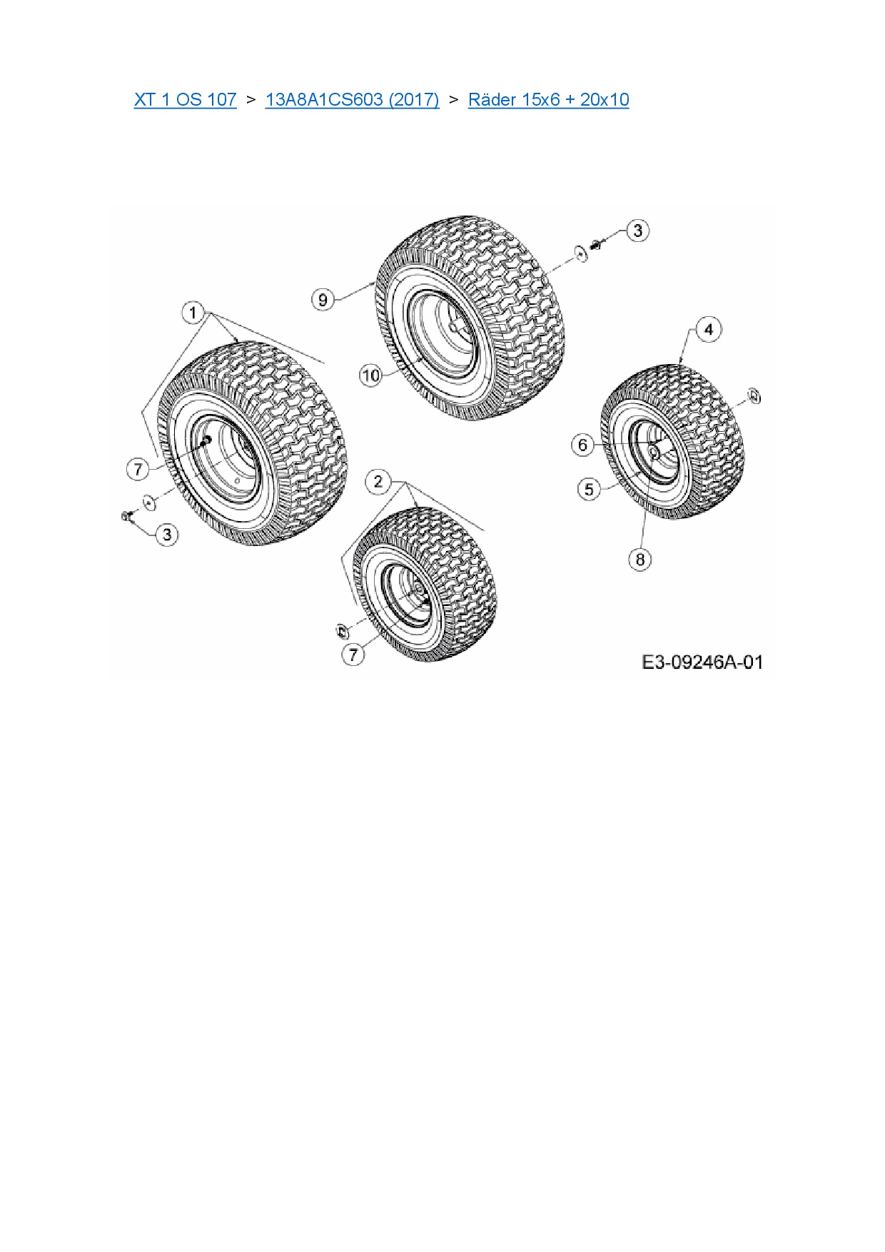 Ersatzteile für Rasentraktor Cub Cadet XT 1 OS 107 aus der Zeichnung Räder 15x6 + 20x10: