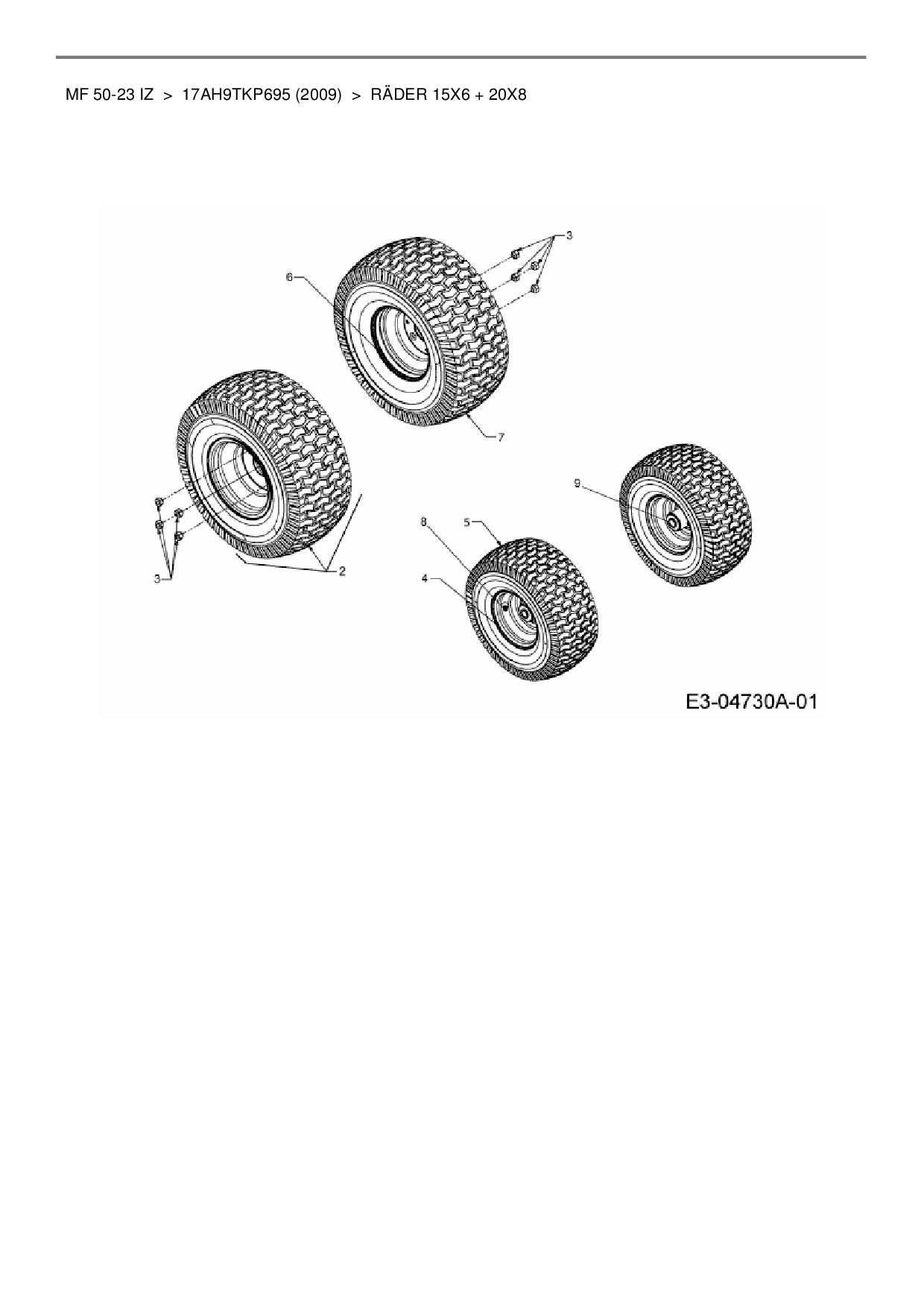 Ersatzteile für Zero Turn Massey Ferguson MF 50-23 IZ aus der Zeichnung Räder 15x6 + 20x8:
