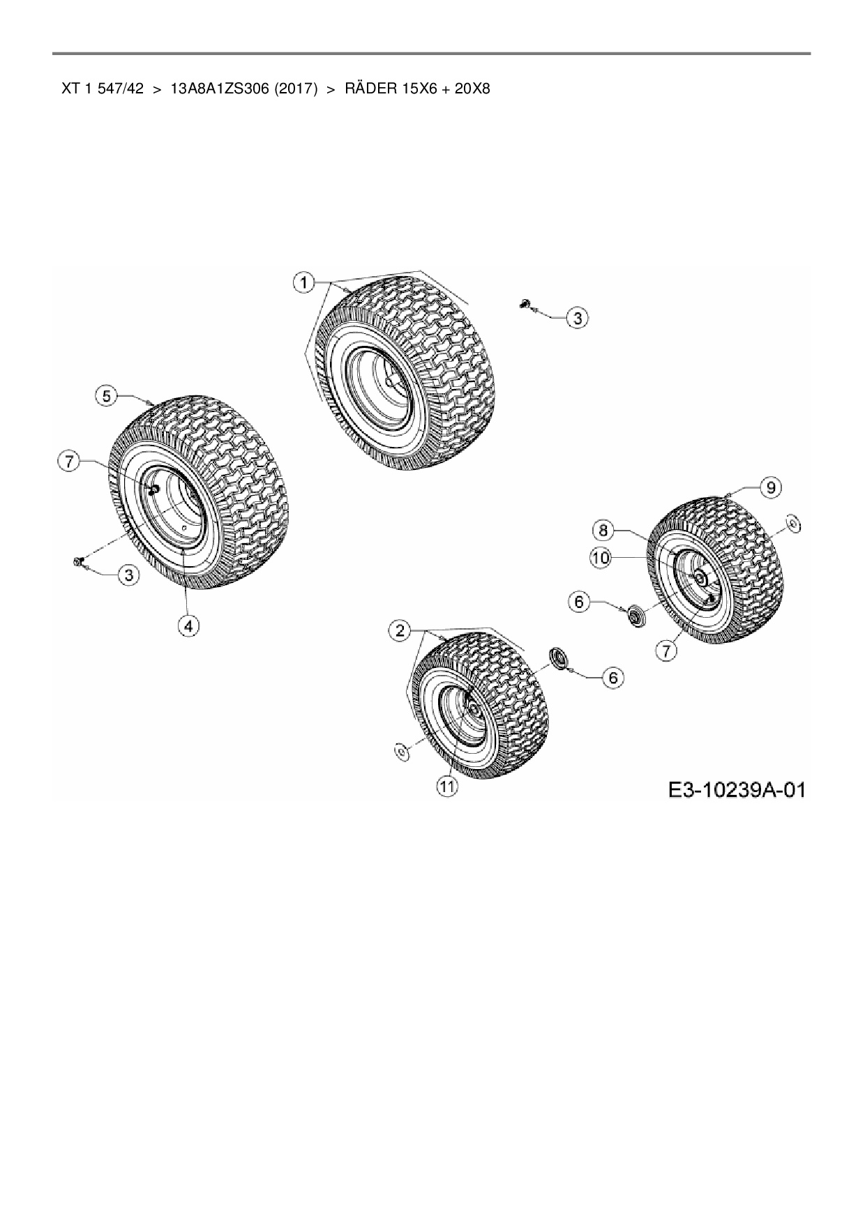 Ersatzteile für Rasentraktor MTD XT 1 547/42 aus der Zeichnung Räder 15x6 + 20x8: