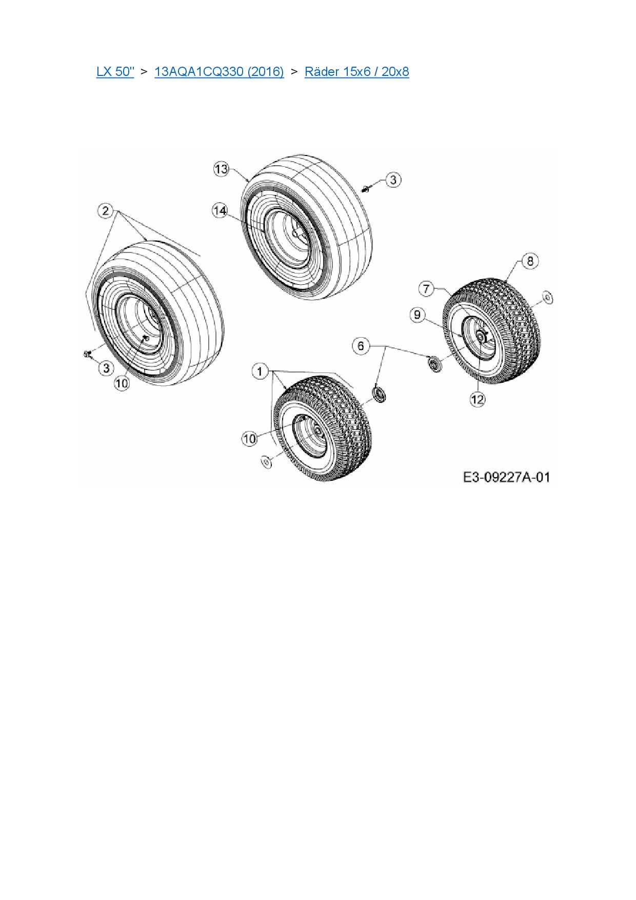 Ersatzteile für Rasentraktor Cub Cadet LX 50" aus der Zeichnung Räder 15x6 / 20x8: