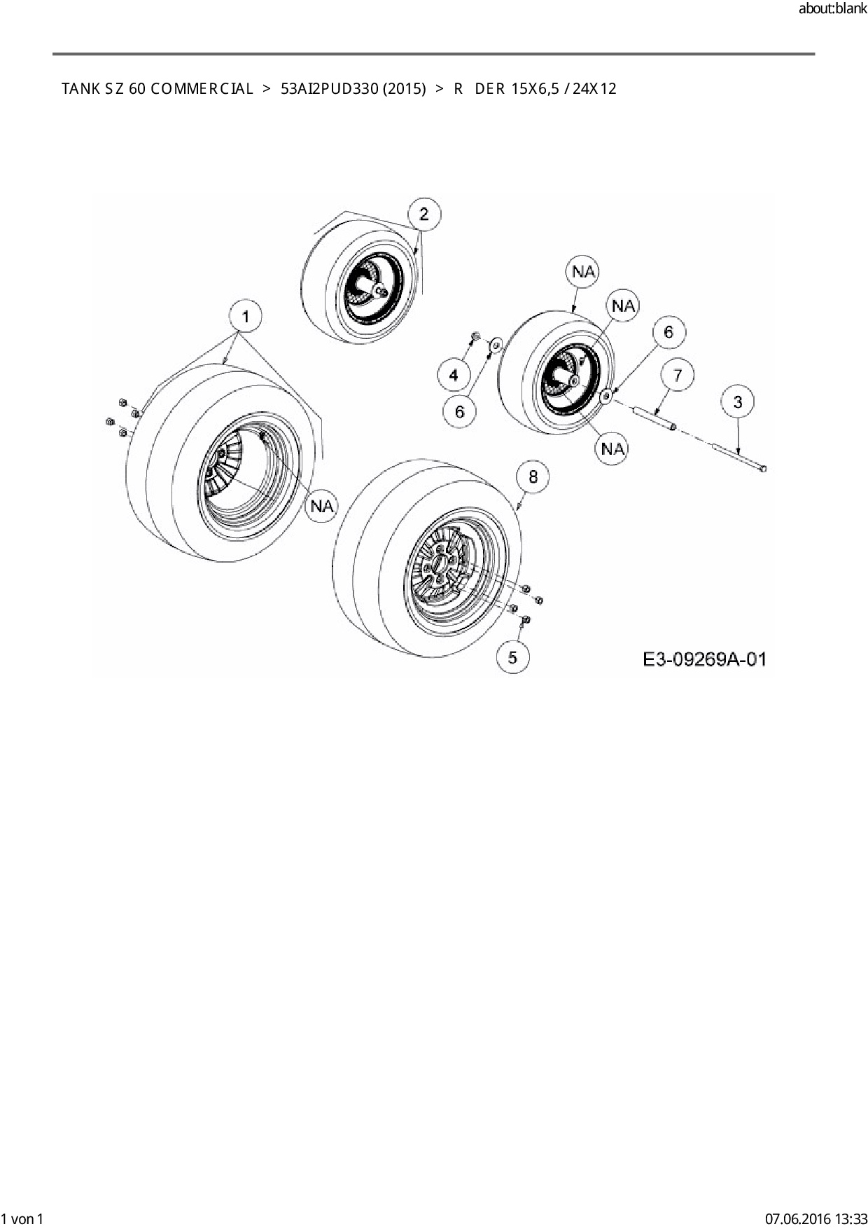 Ersatzteile für Zero Turn Cub Cadet Tank SZ 60 Commercial aus der Zeichnung Räder 15x6,5 / 24x12: