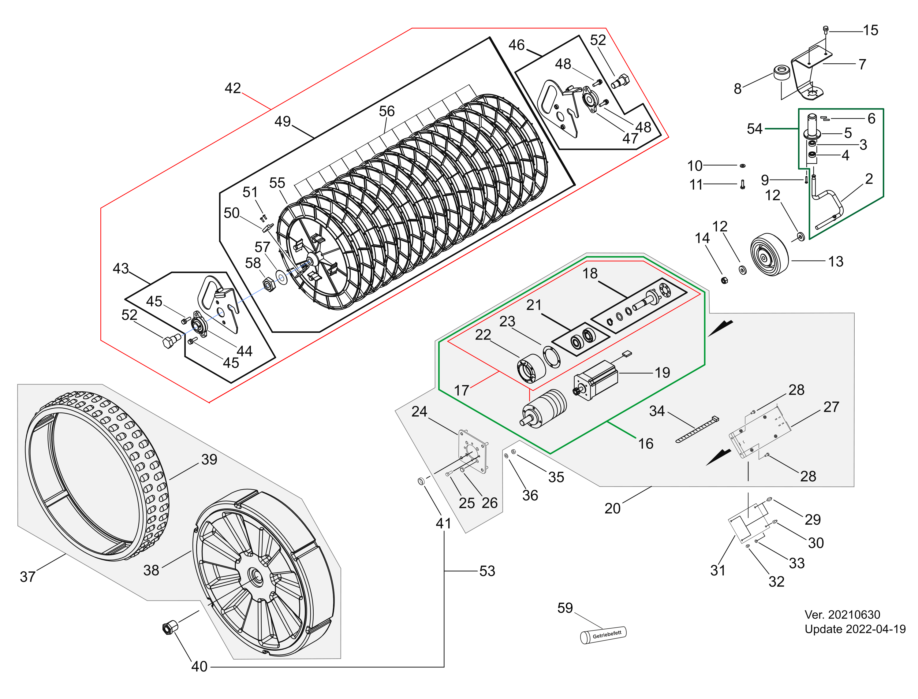 Hier finden Sie alle Ersatzteile von Echo Mähroboter Belrobotics Connected Line BP-1200 der Zeichnungsgruppe Räder, Ballaufnahme: