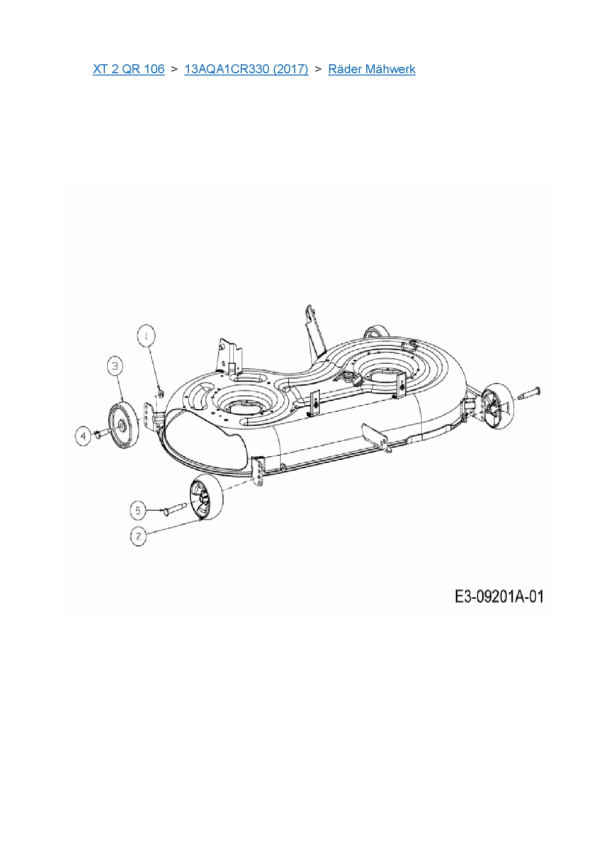 Ersatzteile für Rasentraktor Cub Cadet XT 2 QR 106 aus der Zeichnung Räder Mähwerk: