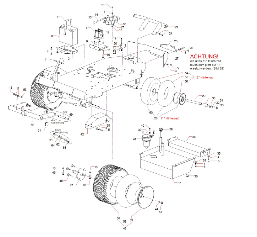 Zeichnung von Erco Multitrak MT-1100 Räder, Rahmen, Anbauteile: