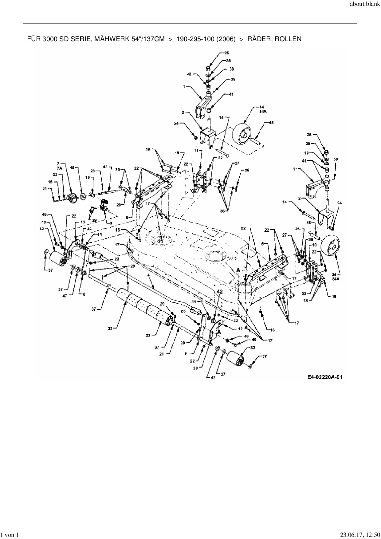 Ersatzteile für Mähwerk Zubehör Garten- und Rasentraktoren für 3000 SD Serie, Mähwerk 54"/137cm aus der Zeichnung Räder, Rollen: