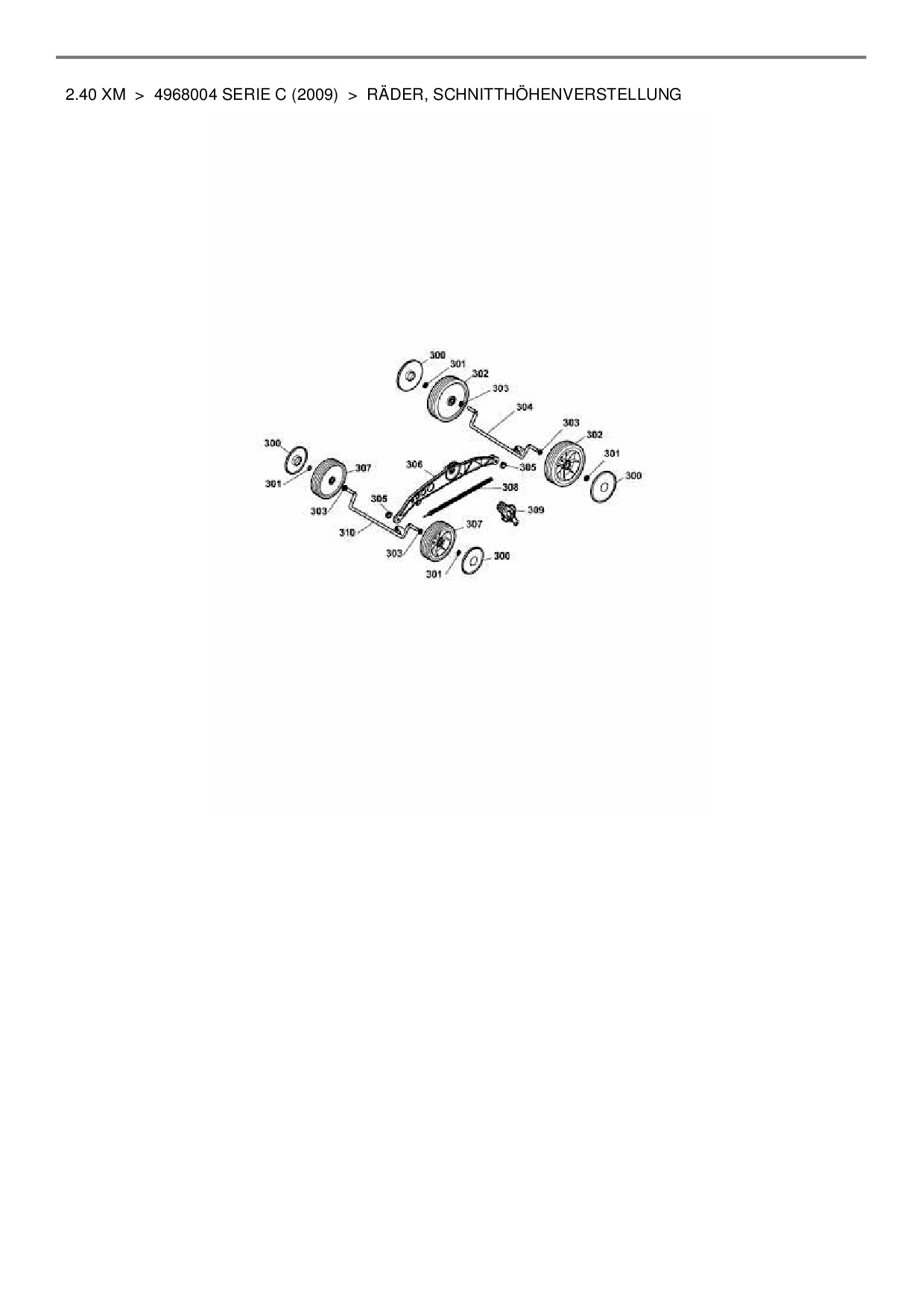 Ersatzteile für Elektromäher Wolf-Garten 2.40 XM aus der Zeichnung Räder, Schnitthöhenverstellung: