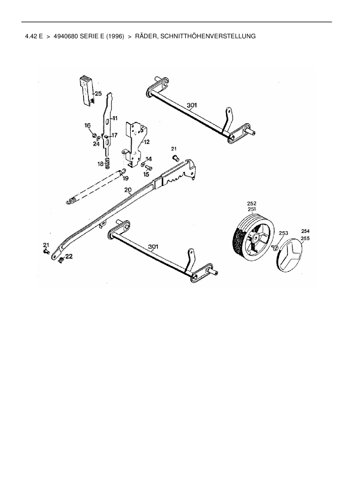 Ersatzteile für Elektromäher Wolf-Garten 4.42 E aus der Zeichnung Räder, Schnitthöhenverstellung: