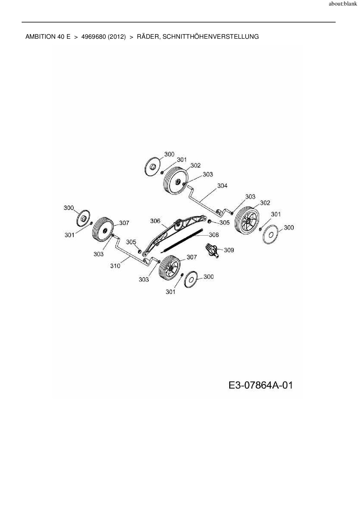 Ersatzteile für Elektromäher Wolf-Garten Ambition 40 E aus der Zeichnung Räder, Schnitthöhenverstellung: