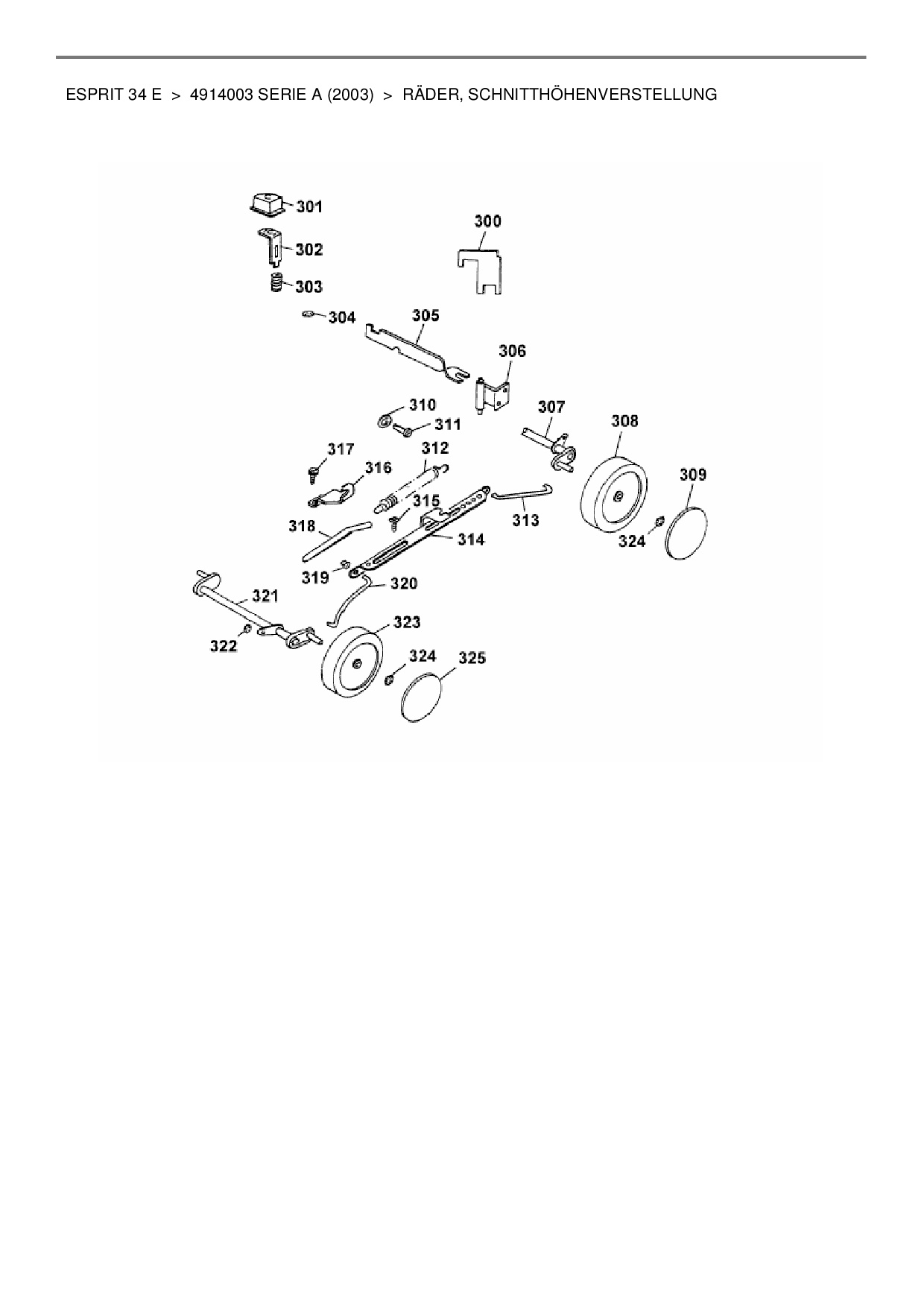 Ersatzteile für Elektromäher Wolf-Garten Esprit 34 E aus der Zeichnung Räder, Schnitthöhenverstellung: