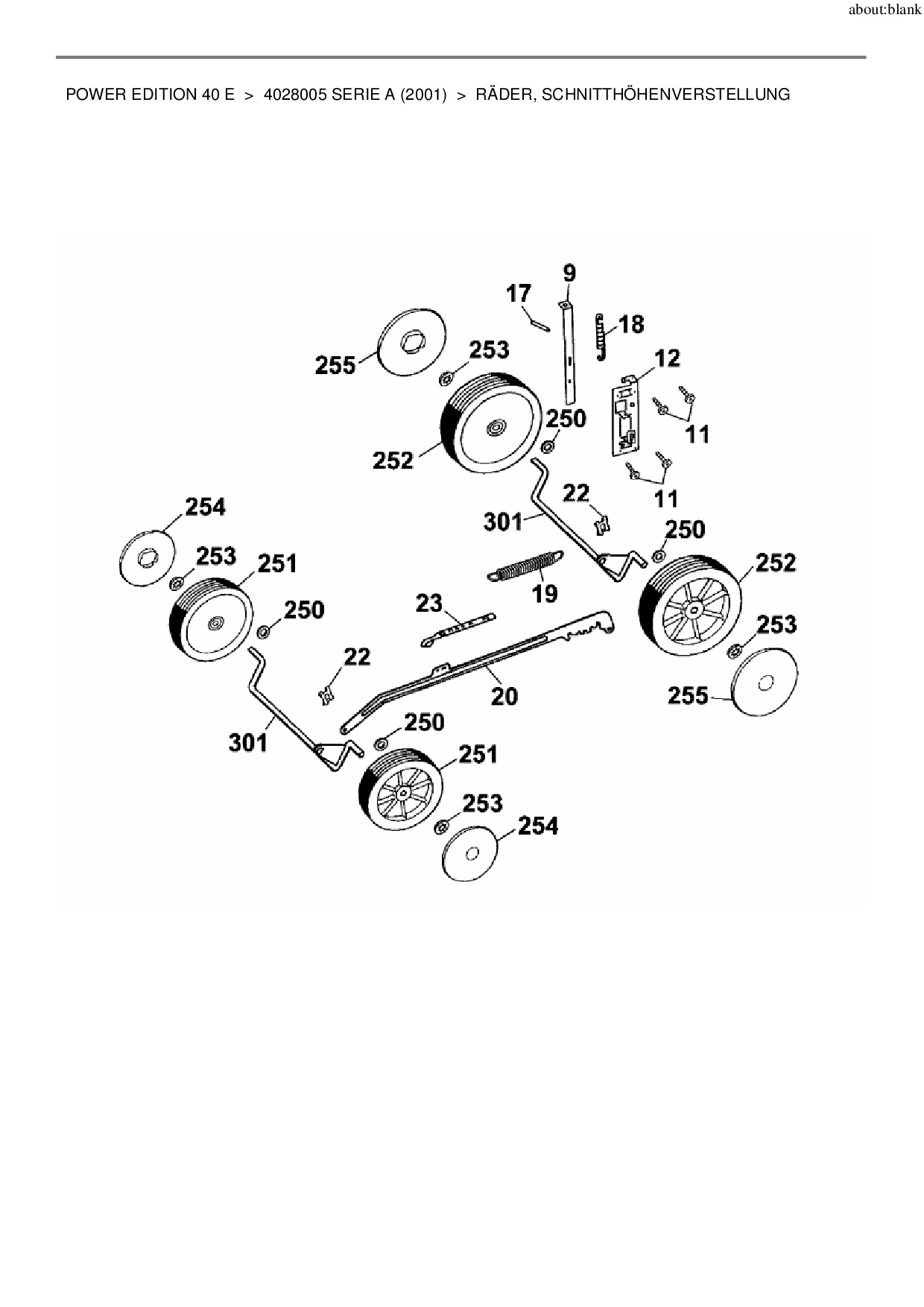 Ersatzteile für Elektromäher Wolf-Garten Power Edition 40 E aus der Zeichnung Räder, Schnitthöhenverstellung:
