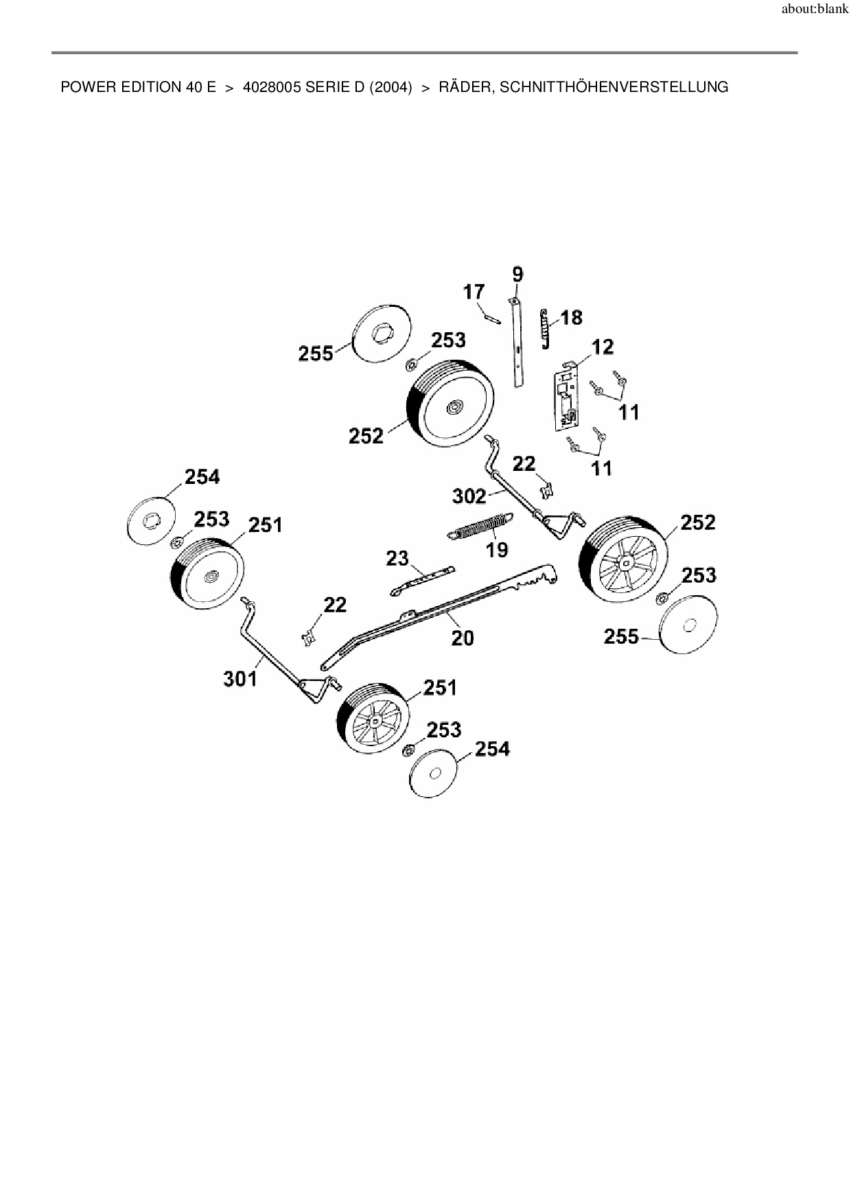 Ersatzteile für Elektromäher Wolf-Garten Power Edition 40 E aus der Zeichnung Räder, Schnitthöhenverstellung: