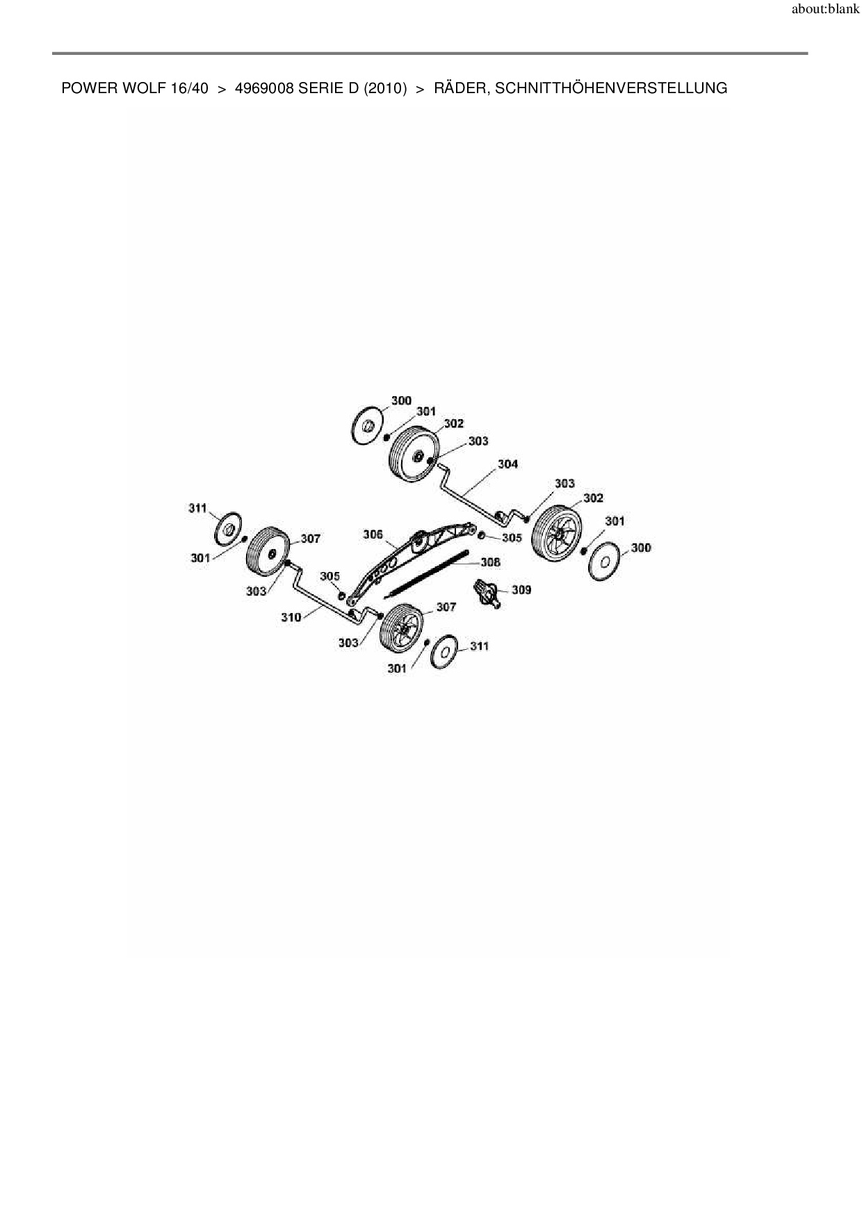 Ersatzteile für Elektromäher Wolf-Garten Power Wolf 16/40 aus der Zeichnung Räder, Schnitthöhenverstellung: