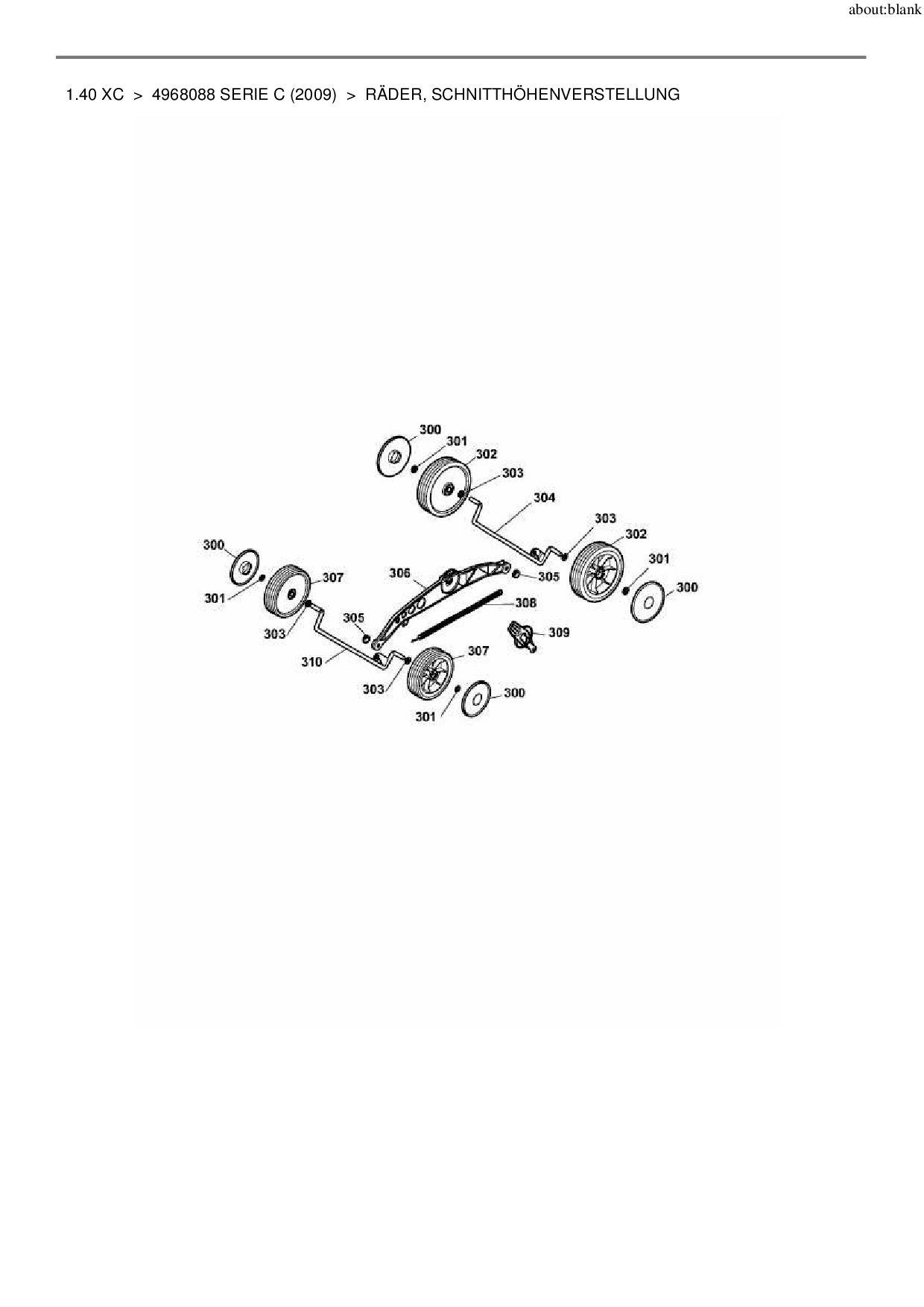 Ersatzteile für Elektromäher Wolf-Garten 1.40 XC aus der Zeichnung Räder, Schnitthöhenverstellung: