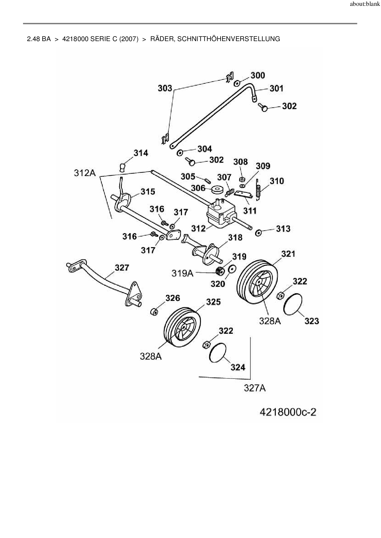 Ersatzteile für Motormäher mit Antrieb Wolf-Garten 2.48 BA aus der Zeichnung Räder, Schnitthöhenverstellung: