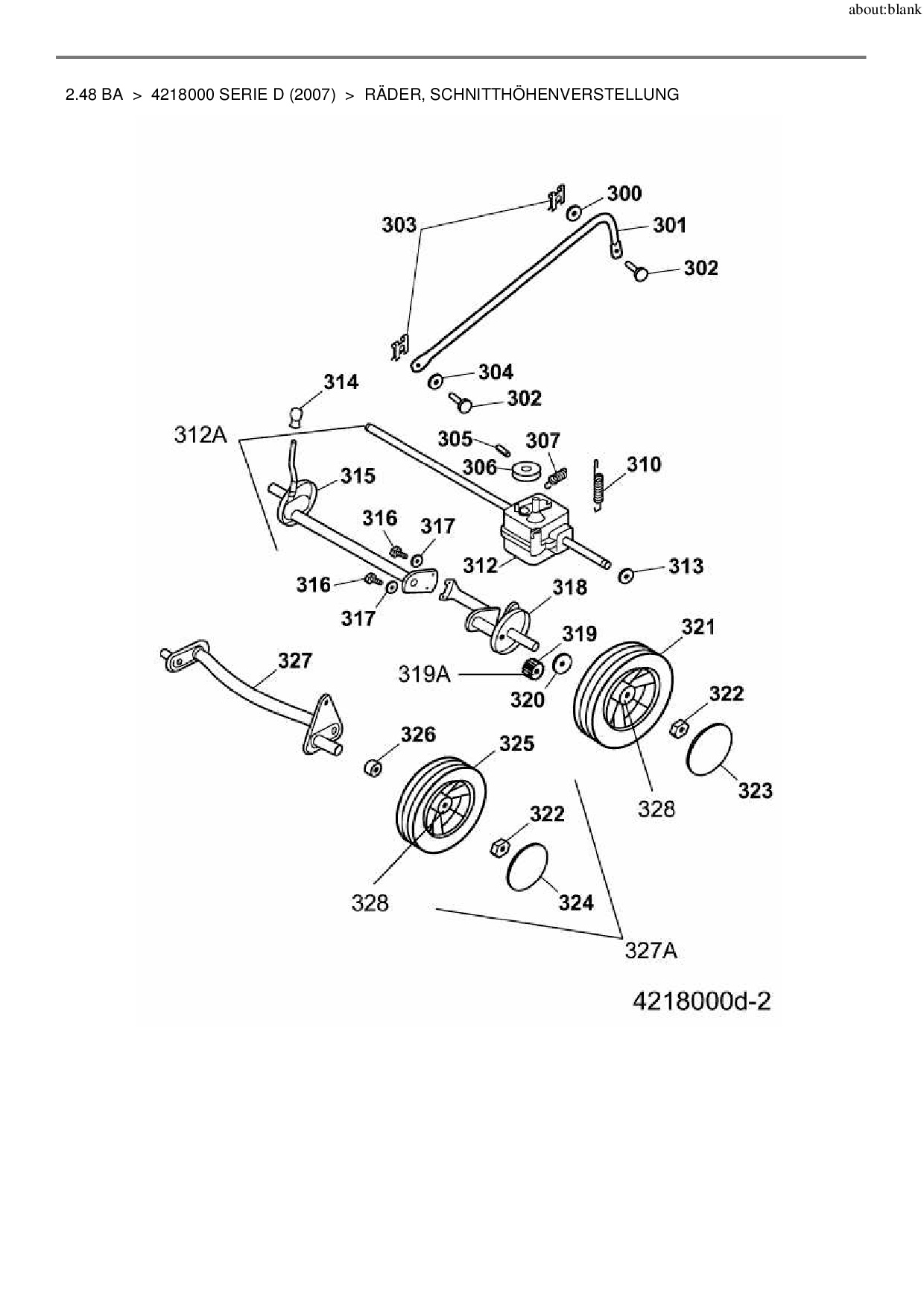 Ersatzteile für Motormäher mit Antrieb Wolf-Garten 2.48 BA aus der Zeichnung Räder, Schnitthöhenverstellung: