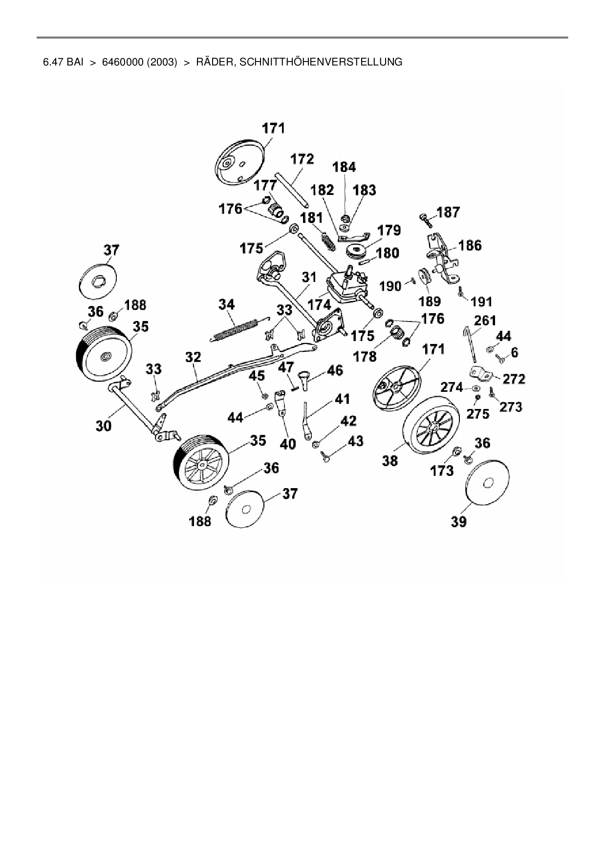 Ersatzteile für Motormäher mit Antrieb Wolf-Garten 6.47 BAi aus der Zeichnung Räder, Schnitthöhenverstellung: