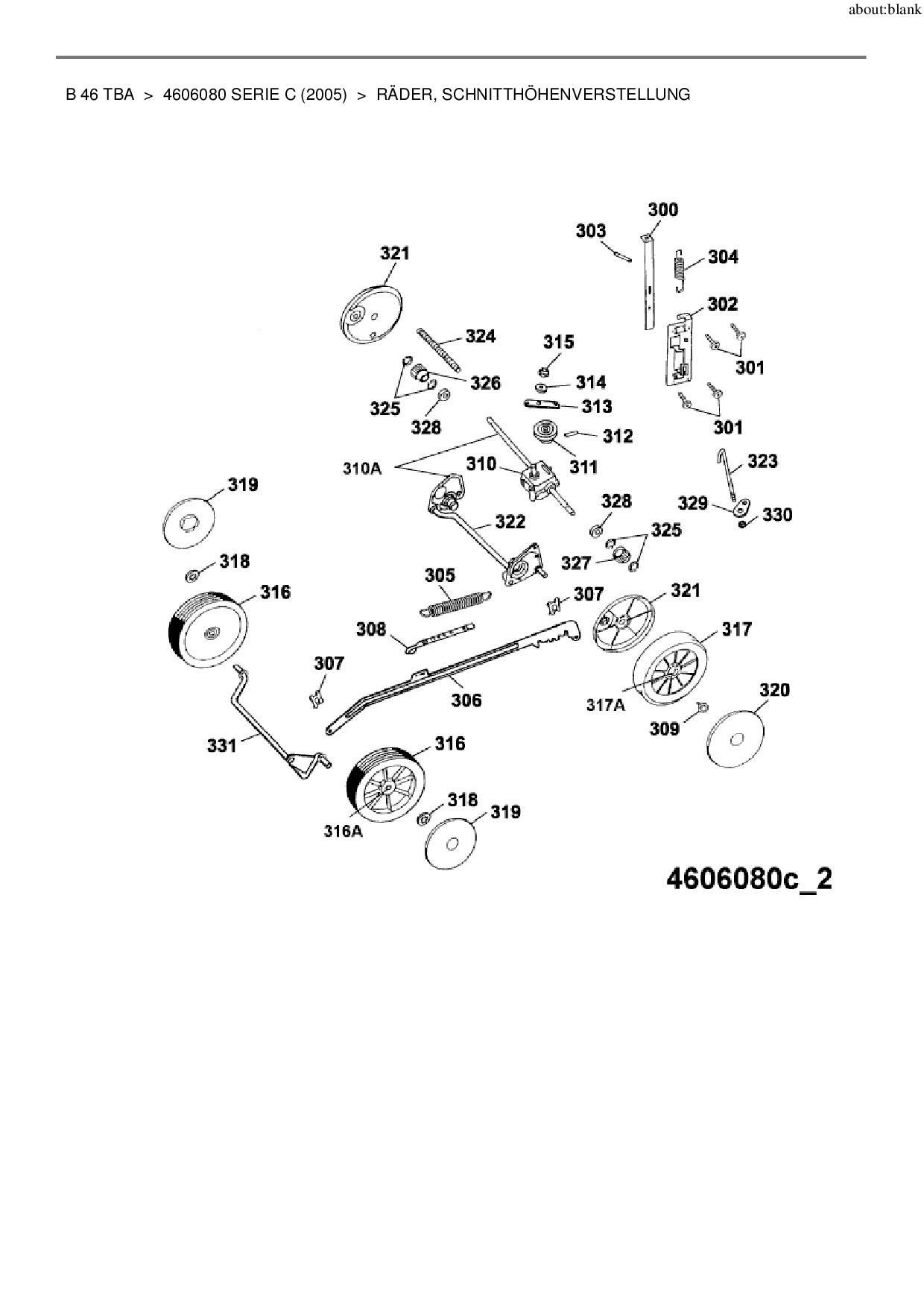 Ersatzteile für Motormäher mit Antrieb Wolf-Garten B 46 TBA aus der Zeichnung Räder, Schnitthöhenverstellung: