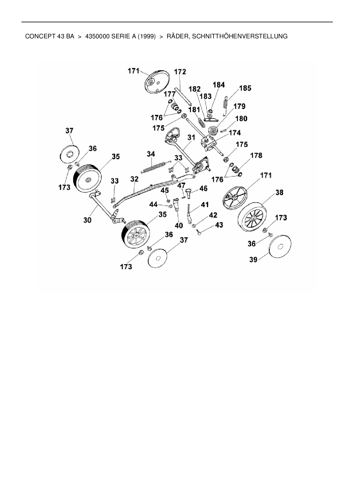 Download Ersatzteil-Zeichnung Wolf-Garten Concept 43 BA Zeichnung Räder, Schnitthöhenverstellung (PDF-Format)