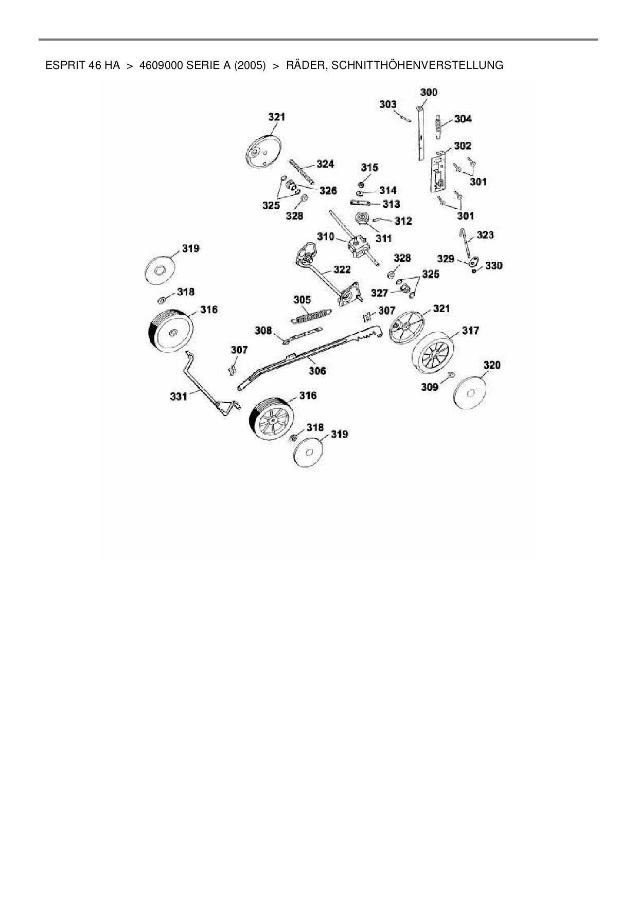 Ersatzteile für Motormäher mit Antrieb Wolf-Garten Esprit 46 HA aus der Zeichnung Räder, Schnitthöhenverstellung:
