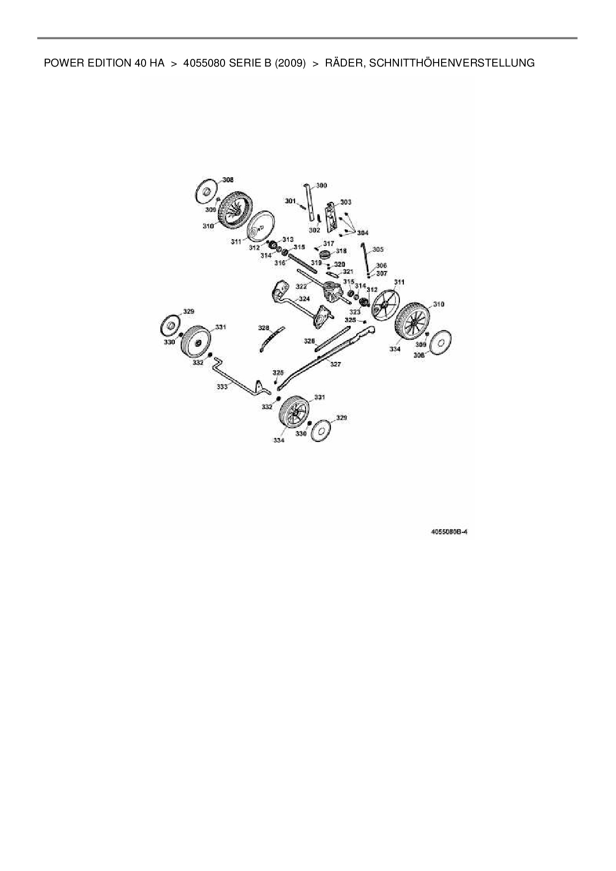 Ersatzteile für Motormäher mit Antrieb Wolf-Garten Power Edition 40 HA aus der Zeichnung Räder, Schnitthöhenverstellung: