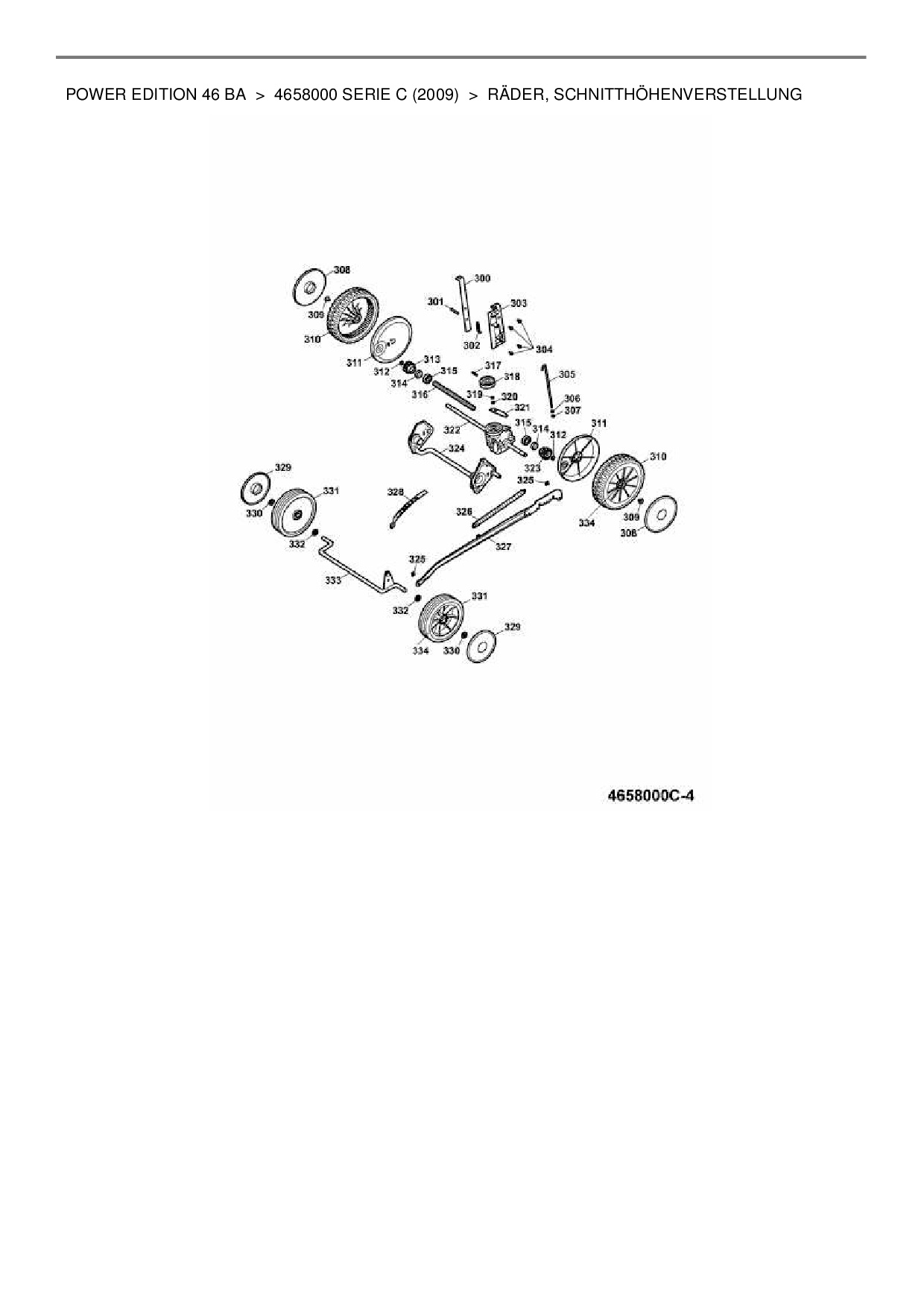 Ersatzteile für Motormäher mit Antrieb Wolf-Garten Power Edition 46 BA aus der Zeichnung Räder, Schnitthöhenverstellung:
