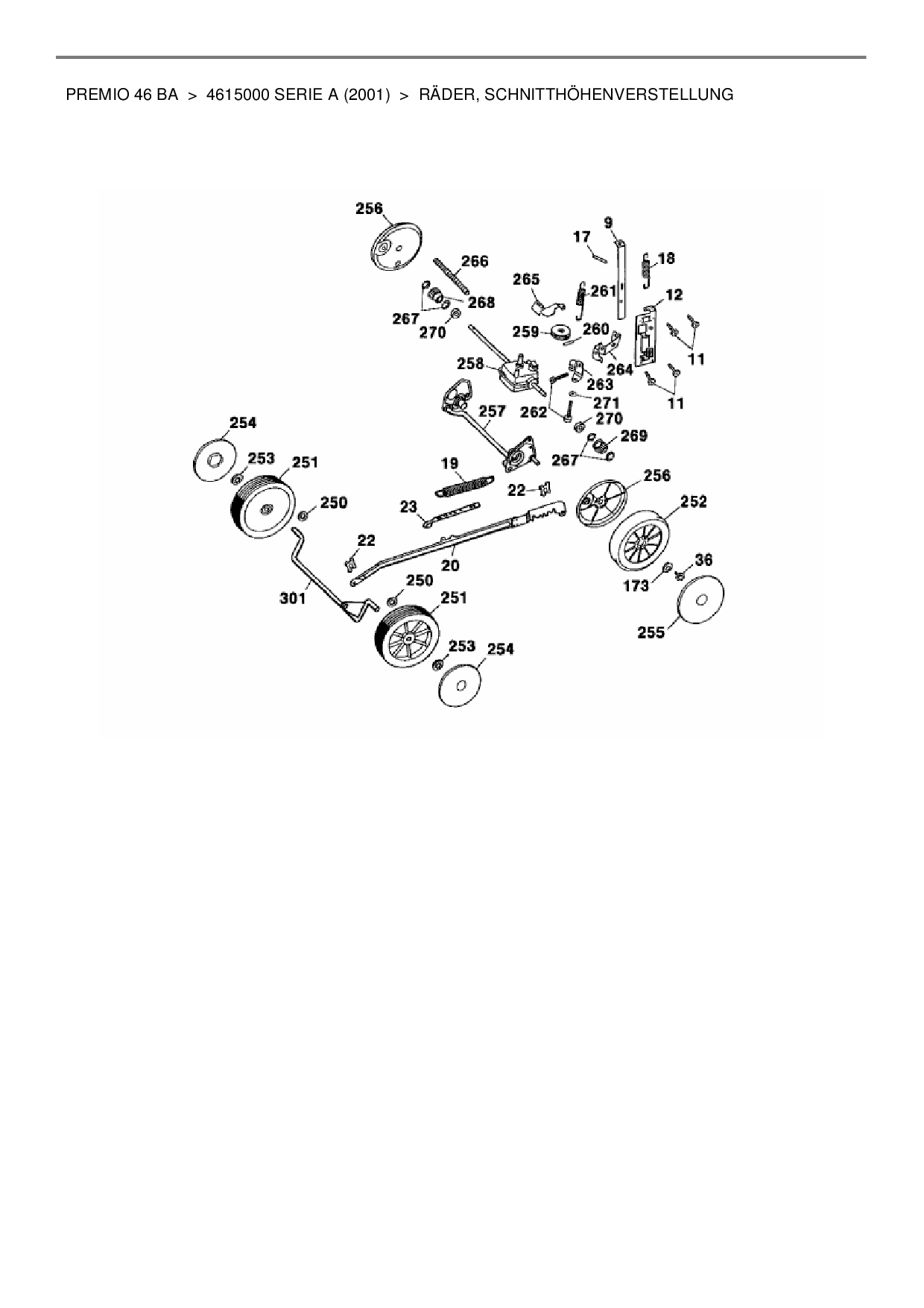 Ersatzteile für Motormäher mit Antrieb Wolf-Garten Premio 46 BA aus der Zeichnung Räder, Schnitthöhenverstellung: