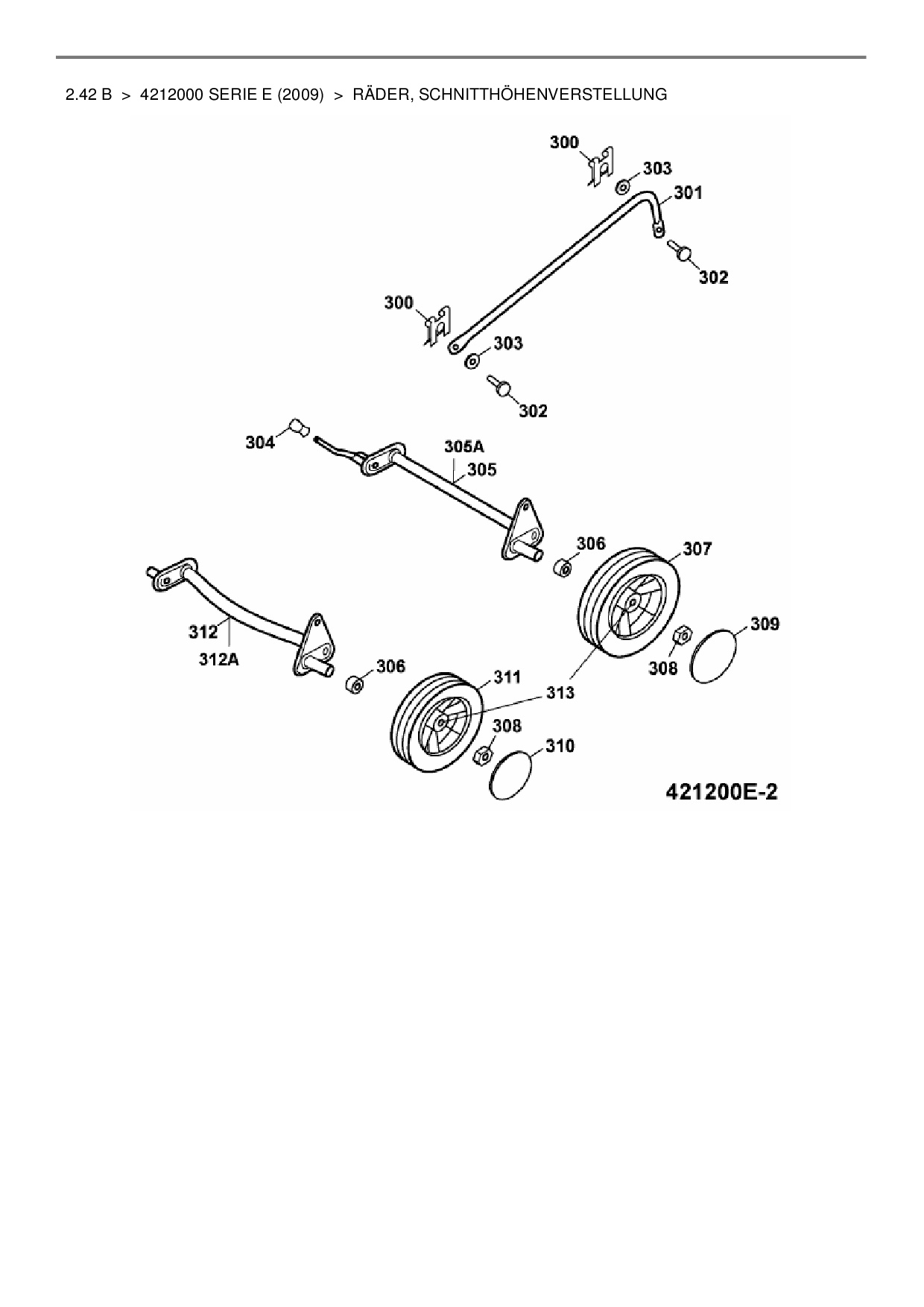 Zeichnung für Wolf-Garten Motormäher 2.42 B mit der Geräte-Artikelnr. 4212000 Serie E ab Baujahr 2009: