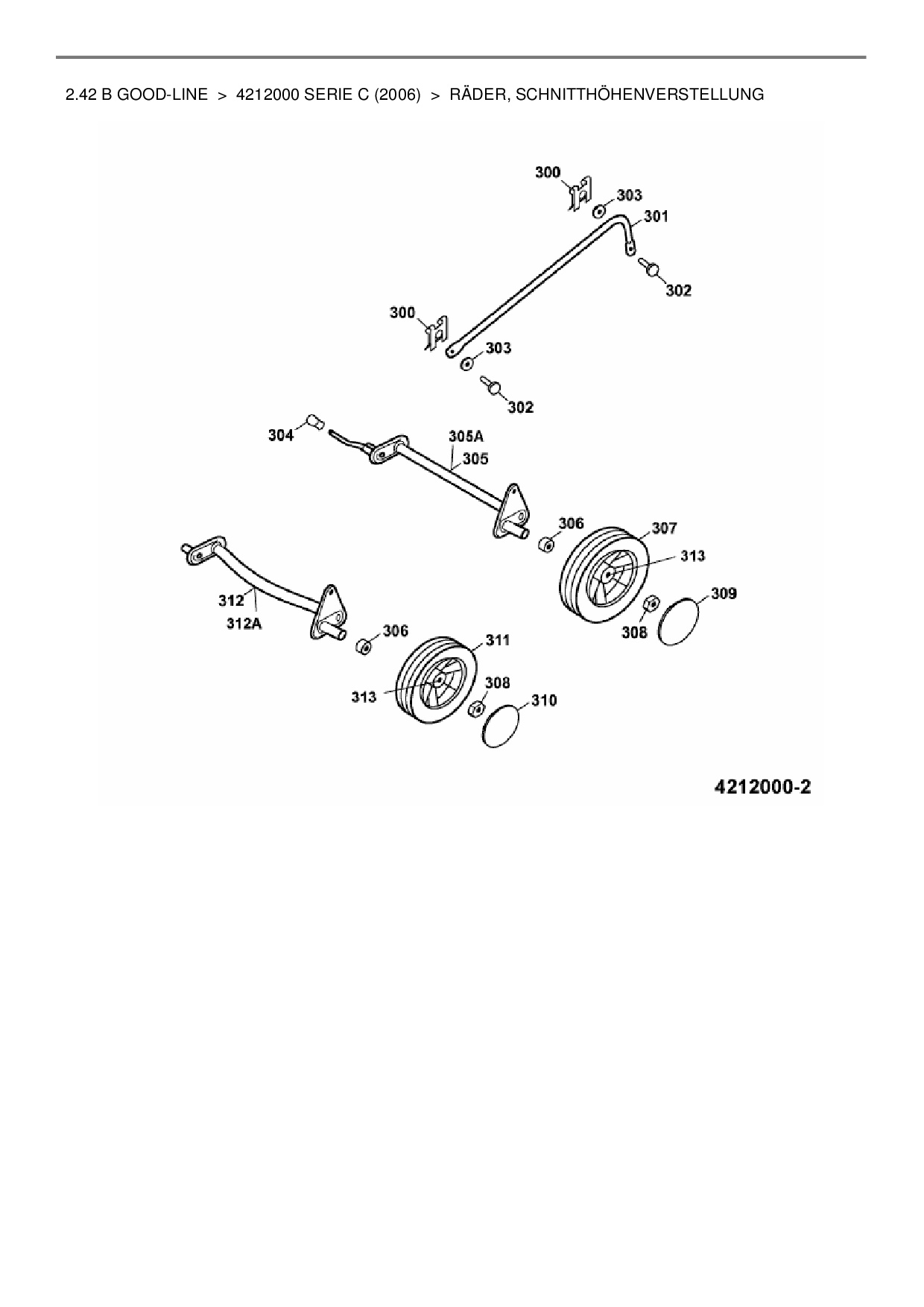 Ersatzteile für Motormäher Wolf-Garten 2.42 B Good-Line aus der Zeichnung Räder, Schnitthöhenverstellung: