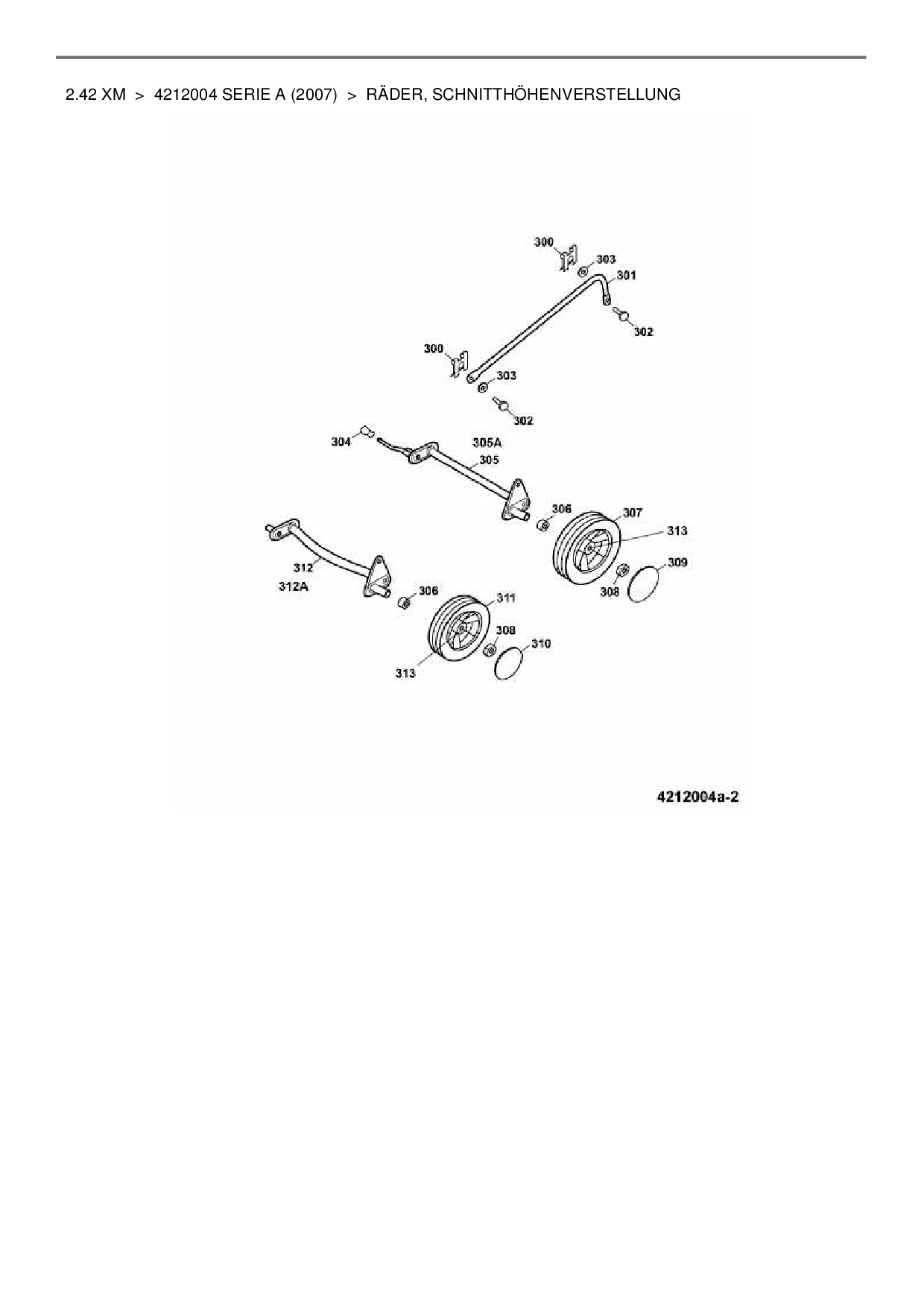 Ersatzteile für Motormäher Wolf-Garten 2.42 XM aus der Zeichnung Räder, Schnitthöhenverstellung: