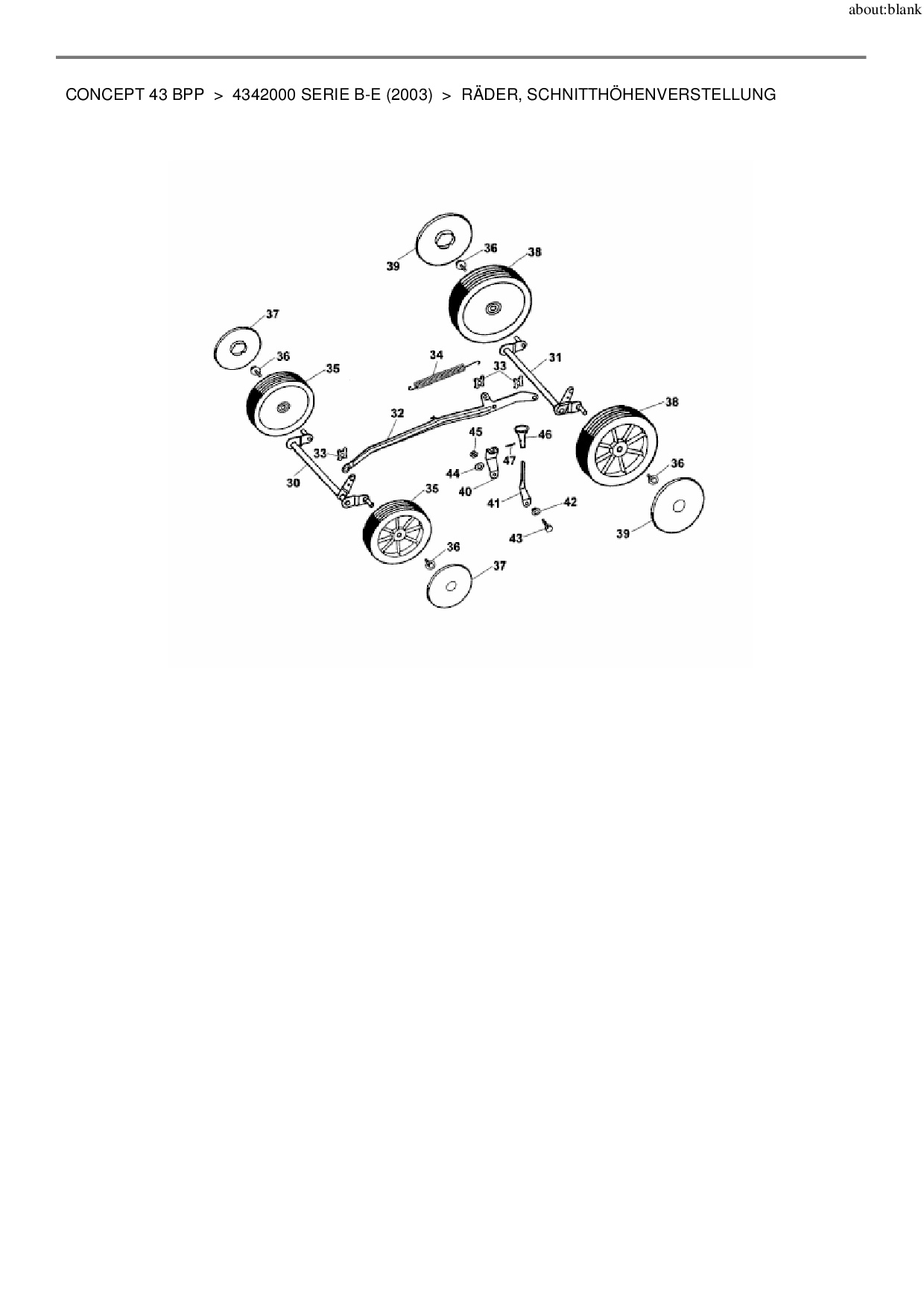Ersatzteile für Motormäher Wolf-Garten Concept 43 BPP aus der Zeichnung Räder, Schnitthöhenverstellung: