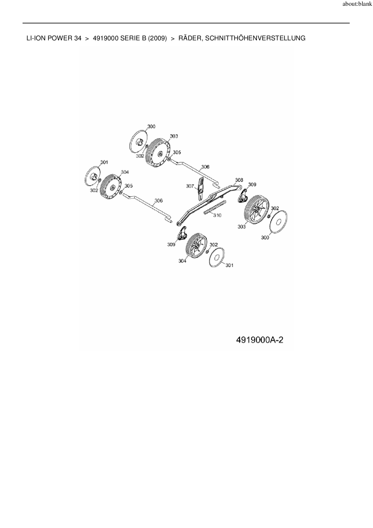Ersatzteile für Akkumäher Wolf-Garten Li-Ion Power 34 aus der Zeichnung Räder, Schnitthöhenverstellung: