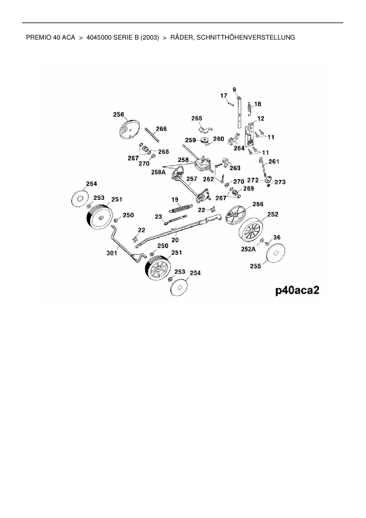 Ersatzteile für Akkumäher mit Antrieb Wolf-Garten Premio 40 ACA aus der Zeichnung Räder, Schnitthöhenverstellung: